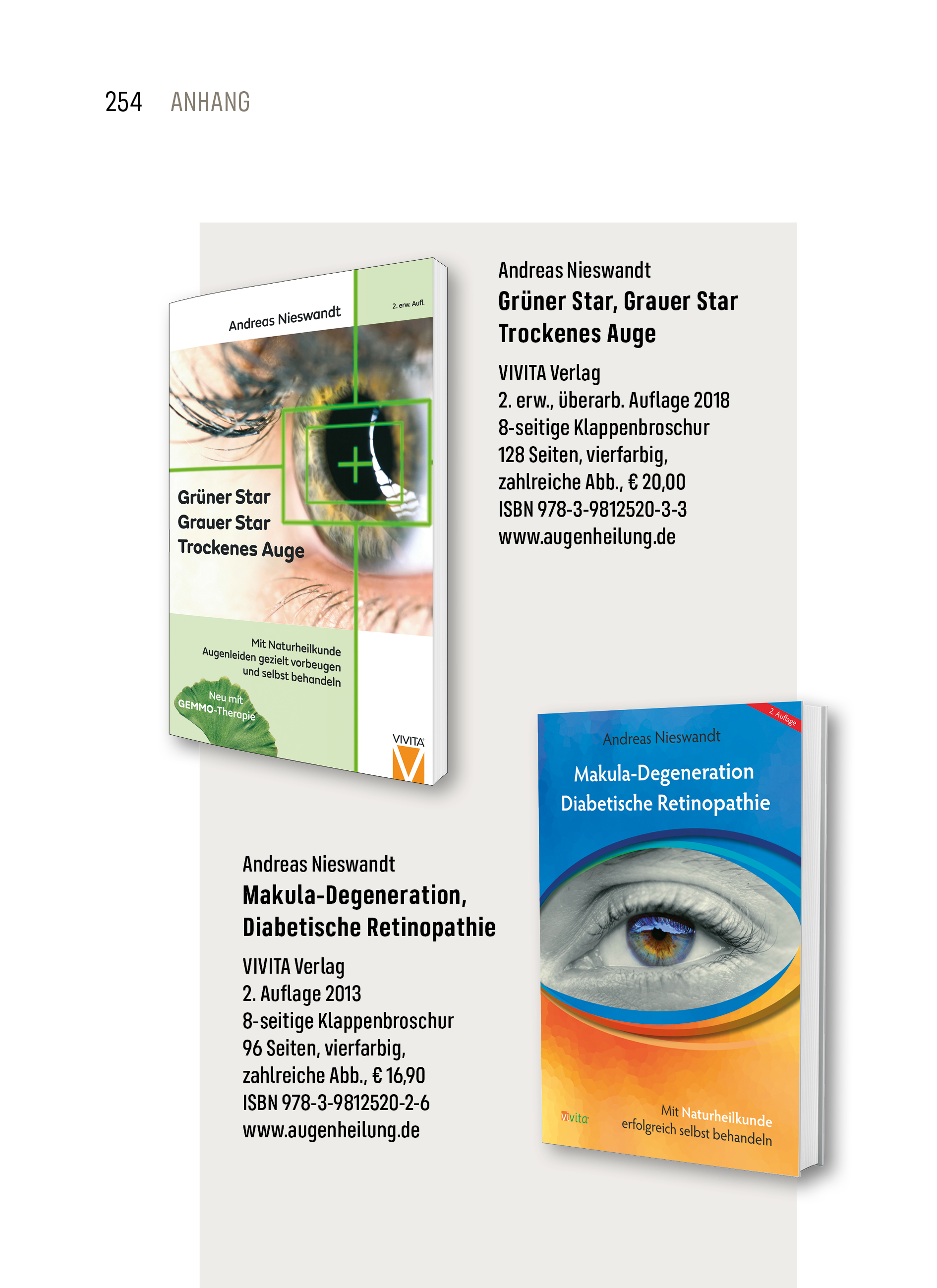 Inzwischen liegt die 4. Auflage dieses Referenzwerkes der komplementärmedizinischen Augenheilkunde im VIVITA-Verlag vor. Traditionell überarbeitet der Autor mit jeder Auflage sein Buch und aktualisiert Inhalte, wenn sich neue oder wirksamere Methoden als brauchbar erwiesen haben. Diese 4. Auflage erfährt eine wesentliche Erweiterung durch die Eingliederung der Gemmotherapie und enthält Porträts der wichtigsten in der Augenheilkunde verwendeten Gemmomazerate und Tinkturen. Außerdem stellt der Autor eine wirksame Atemtherapie vor, die vor allem für Patienten mit Blutdruckproblemen und erhöhtem Augeninnendruck eine spürbare Erleichterung bringen soll. Neu ist auch die verstärkte Berücksichtigung geistig-seelischer Befindlichkeiten im Zusammenhang mit den auftretenden Symptomen.