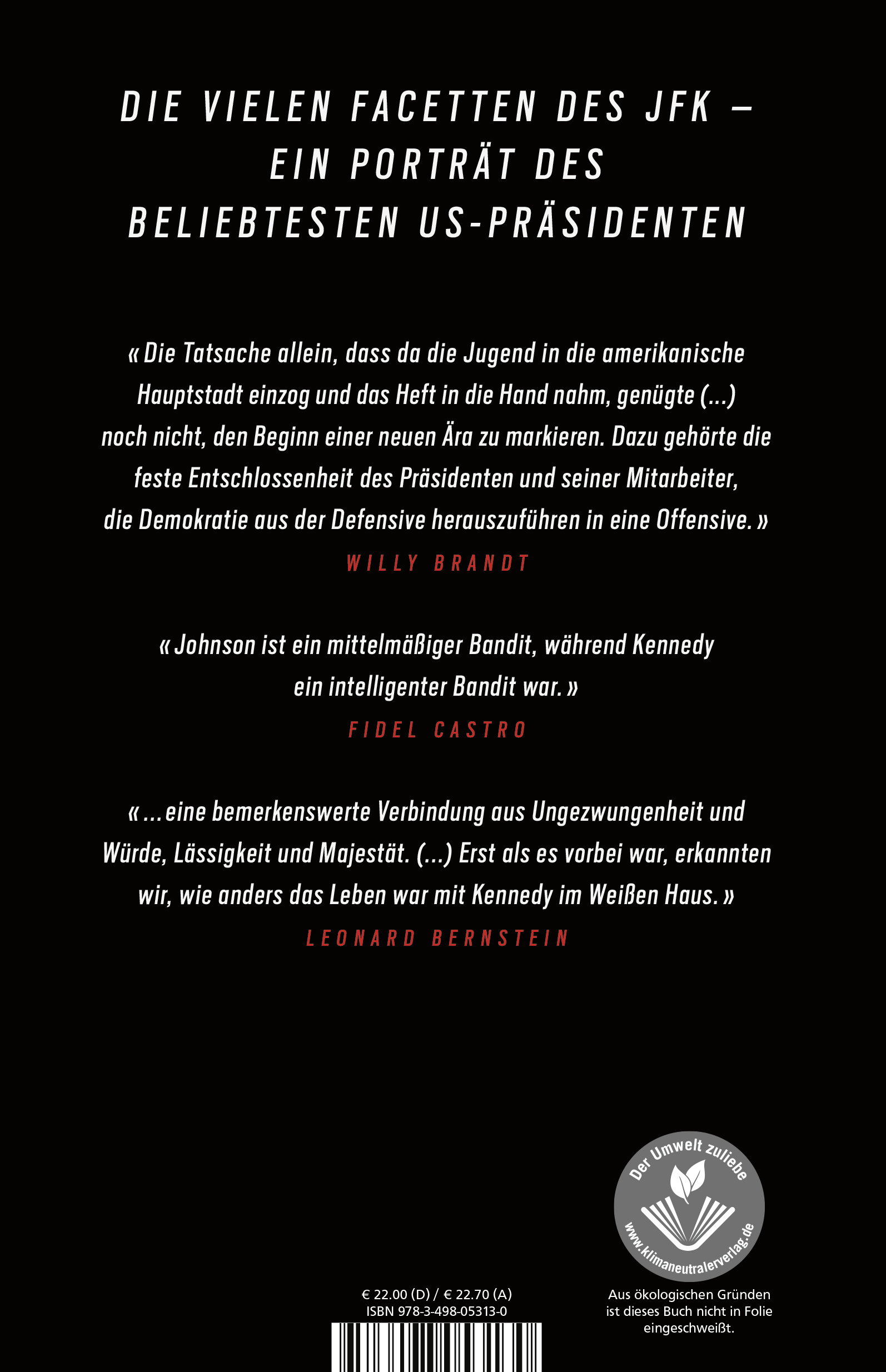 | Schlagworte | Berliner Mauer • Chruschtschow • Ermordung • Frauenheld • Jackie Kennedy • Kalter Krieg • Kennedy, John F.; Biografien • Krankheit • Kuba-Krise • Politiker (Biografien/Erinnerungen); Kennedy, John F. • USA; Biografien • US-Präsident • Vietnamkrieg |