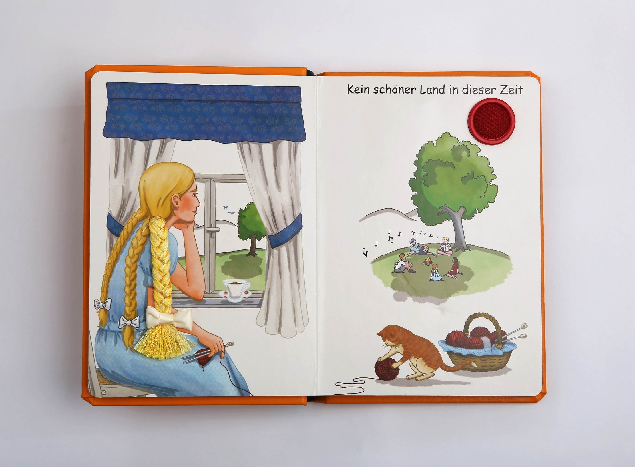 Deshalb gibt es die SingLiesel: Das Buch, das auf Knopfdruck singt. Wie das geht? Auf jeder Seite ist ein dicker, roter Knopf aus Stoff. Drückt man darauf, wird ein Volkslied vorgesungen. Klingt einfach? Ist es auch. Und deshalb ist die SingLiesel bei Menschen mit Demenz so beliebt. Das bestätigen unzählige Berichte aus Pflege-Einrichtungen und von Angehörigen.