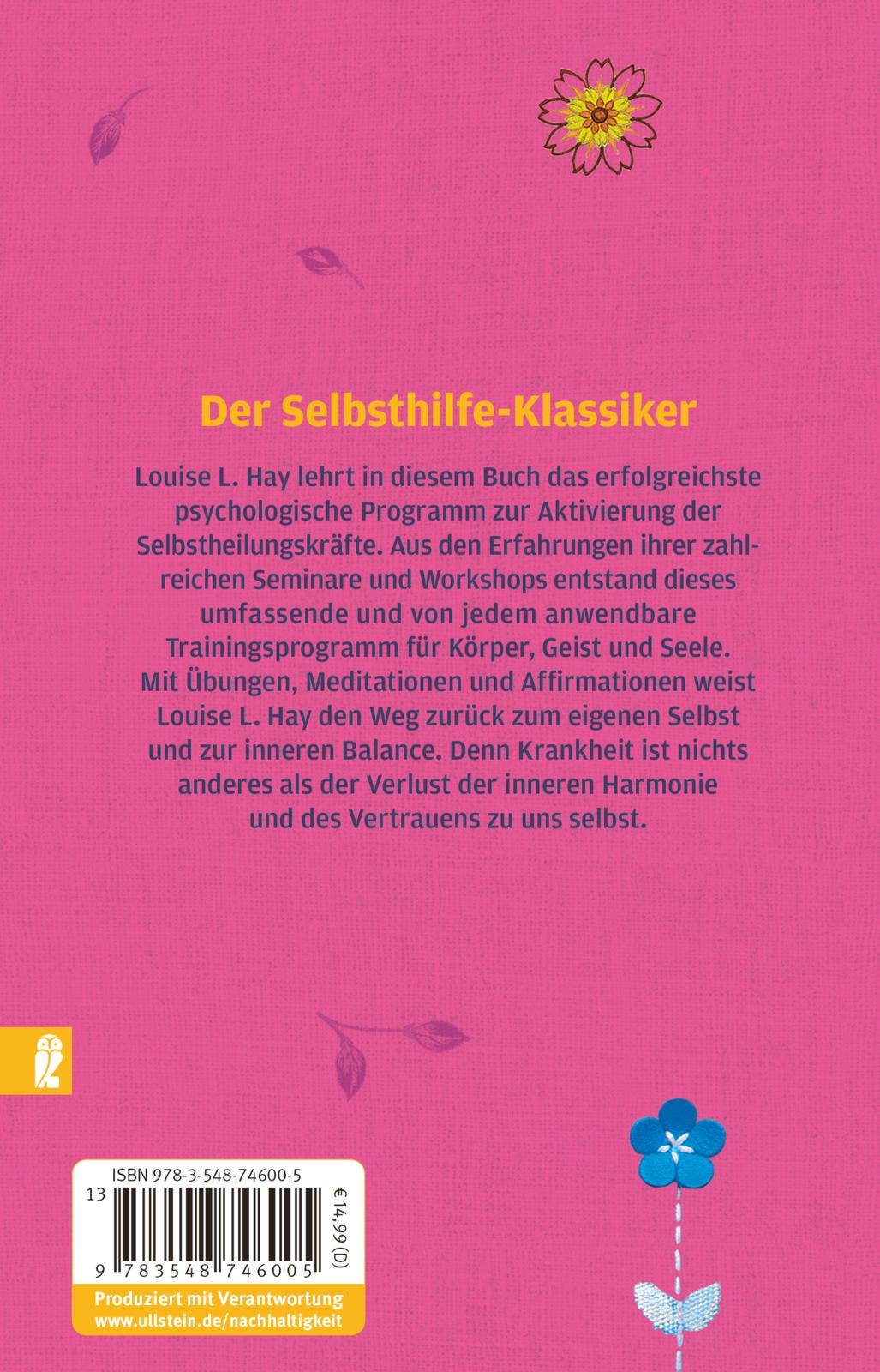 Louise L. Hay lehrt in diesem Buch das erfolgreichste psychologische Programm zur Aktivierung der Selbstheilungskräfte. Aus den Erfahrungen ihrer zahlreichen Seminare und Workshops entstand dieses umfassende und von jedem anwendbare Trainingsprogramm für Körper, Geist und Seele. Mit Übungen, Meditationen und Affirmationen weist Louise L. Hay den Weg zurück zum eigenen Selbst und zur inneren Balance. Denn Krankheit ist nichts anderes als der Verlust der inneren Harmonie und des Vertrauens zu uns selbst.