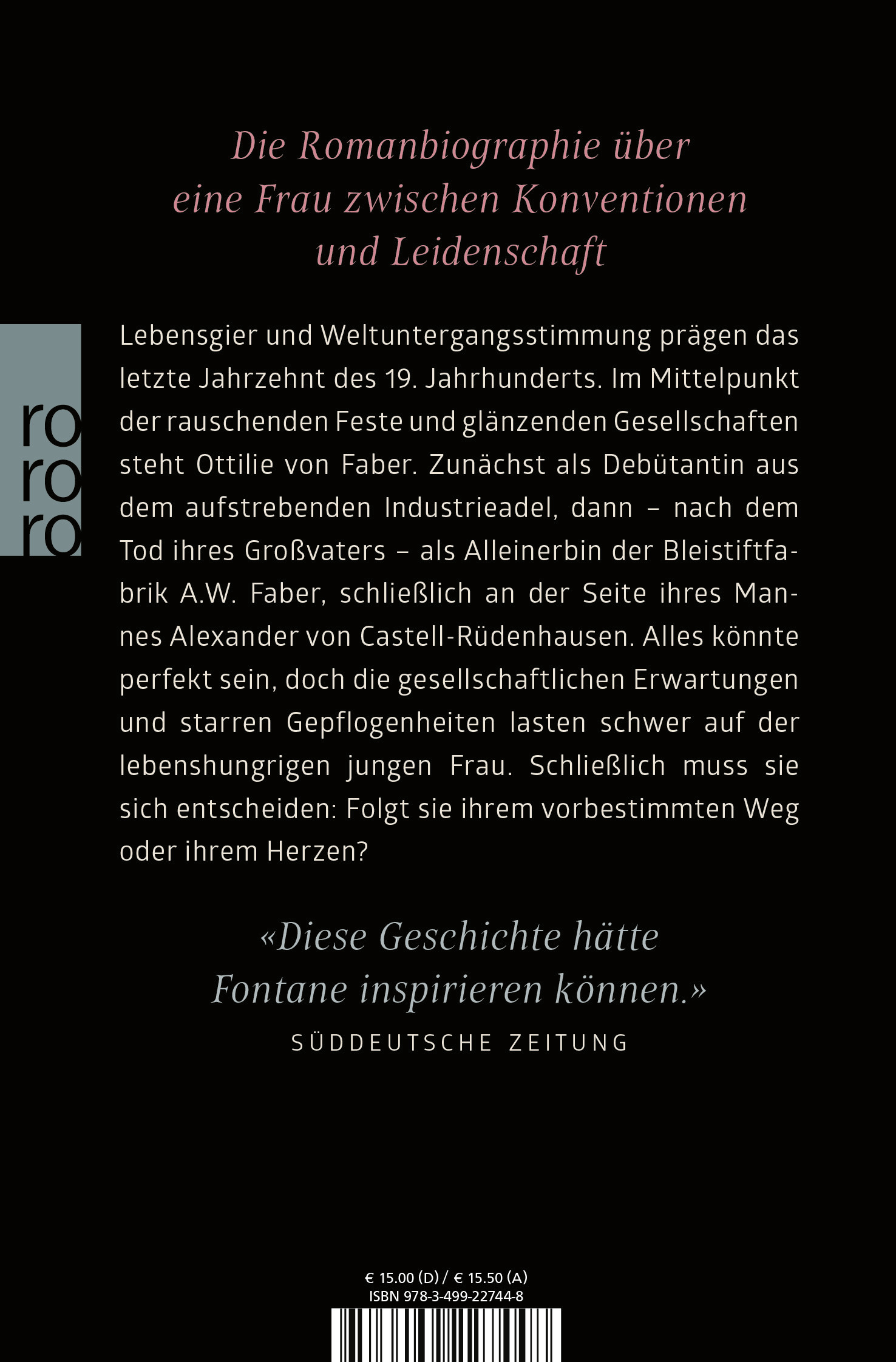 Lebensgier und Weltuntergangssstimmung prägen das letzte Jahrzehnt des 19. Jahrhunderts. Im Mittelpunkt der rauschenden Feste und glänzenden Gesellschaften steht Ottilie von Faber. Zunächst als Debütantin aus dem aufstrebenden Industrieadel, dann - nach dem Tod ihres Großvaters - als Alleinerbin der Bleistiftfabrik A.W. Faber, schließlich an der Seite ihres Mannes Alexander von Castell-Rüdenhausen. Alles könnte perfekt sein, doch die gesellschaftlichen Erwartungen und starren Gepflogenheiten lasten schwer auf der lebenshungrigen jungen Frau. Schließlich muss sie sich entscheiden: Folgt sie ihrem vorbestimmten Weg oder ihrem Herzen?