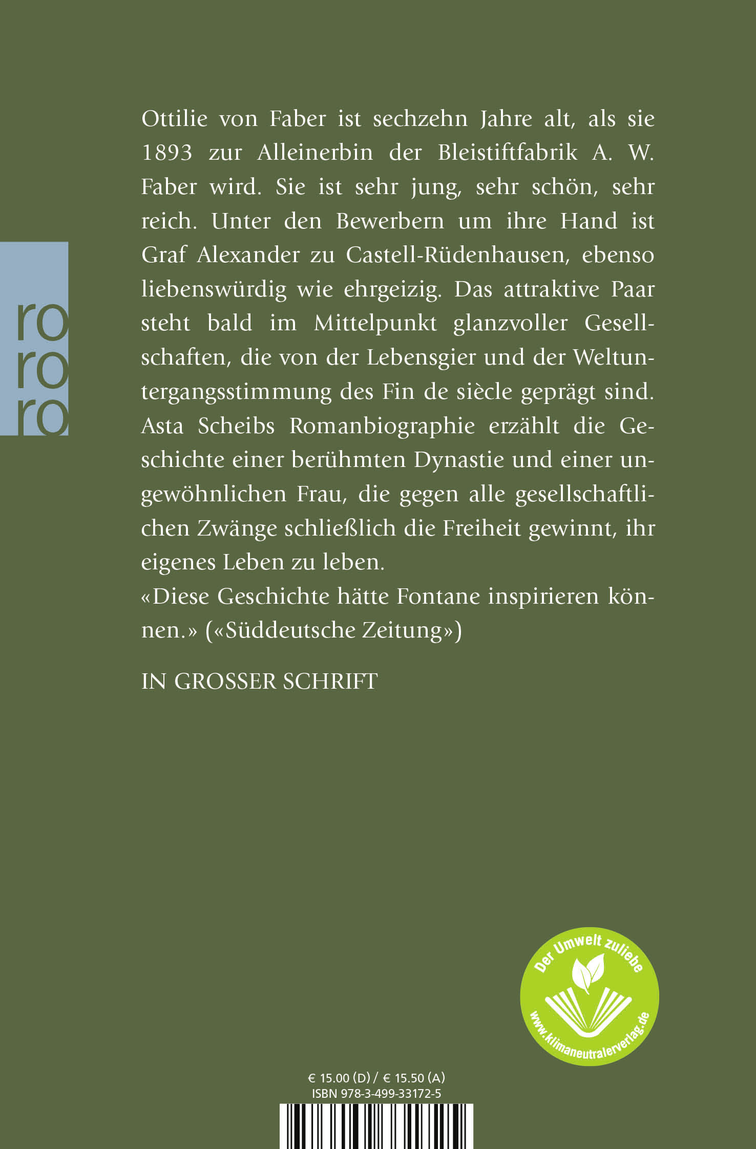 | Schlagworte | 19. Jahrhundert Deutschland • Adel • Biografisch • Biographischer Roman • Deutsche Adelsgeschichte • Emanzipierte Frauenfiguren • Faber-Castell • Faber Castell Familie • Faber-Castell, Ottilie von • Faber-Castell (Unternehmen); Romane/Erzählungen • Familiensaga • Großdruckbände; Romane/Erzählungen • Historische Frauenbiografie • Historischer Roman • Industrielle Revolution • Jahrhundertwende • Nürnberg • Nürnberg, Geschichte; Romane/Erzähl. • Nürnberg, Geschichte; Romane/Erzählungen • Romanbiografie • Romane für Frauen • Starke Frauen • Starke Frauenfiguren • Unternehmensdynastien • Wahre Begebenheit • Wahre GEschichte • Wirtschaftsgeschichte |
