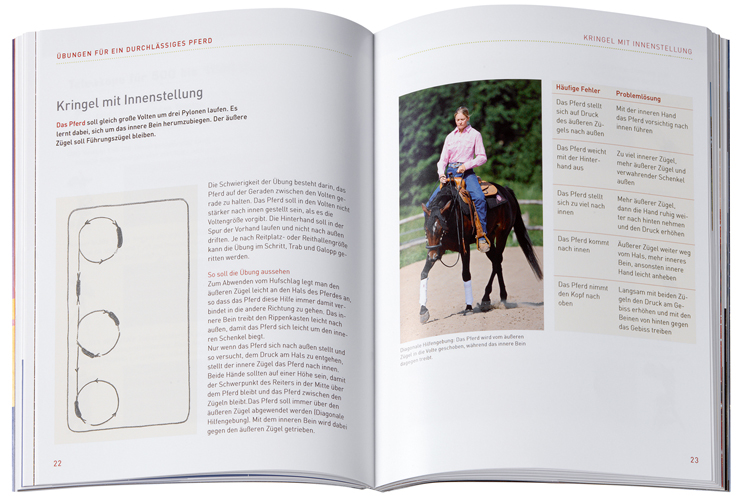 Jeden Tag steht man als Reiter vor der Frage: Wie gestalte ich die tägliche Reiteinheit, damit mein Pferd und ich in der Ausbildung vorankommen und dabei auch noch Spaß haben? Die vorgestellten Übungen bauen schrittweise aufeinander auf und bilden die Basis für das Training, sorgen für Abwechslung und sind leicht miteinander zu kombinieren. Kurze Texte und klare Zeichnungen zu jeder Lektion sowie Tabellen mit häufigen Problemen und deren Lösung ermöglichen ein schnelles Erfassen der Übung und sorgen für erfolgreiche Trainingsstunden.