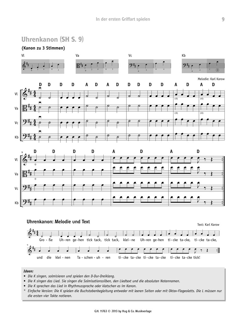 In der ersten Griffart spielenVoia voiaRhythmus-Memory: 4/4-TaktDie Noten der D-Dur-TonleiterDo-re-miUhrenkanonSolmisieren ist nicht schwerDie Noten auf der G-SaiteKb: Die Noten auf der A-SaiteRumba IBuffonentanzString Boogie-WoogieNotenrätsel: Noten der G-, D- und A-SaiteDer 2/4-TaktSkip to my louSchottischer ReelSlowakischer DudelsackspielerRhythmusrätsel: Stücke im 2/4- und 4/4-TaktKadenz D-DurBruder JakobDer Mond ist aufgegangenDer 3/4-TaktHört ihr die DrescherDie punktierte halbe NoteAmazing GraceSwing alongRigaudonDie punktierte ViertelnoteOde an die FreudeOh SusannaRhythmus-Domino: Punktierte NotenIn der zweiten Griffart spielenDie zweite Griffart (Kb: und die 2.Lage)Die Noten der zweiten Griffart(Kb: und das c in der 2. Lage)Mary lost her little lambDo-re-mi in C-DurNotenrätsel: Noten der zweiten Griffart(Kb: und das c in der 2.Lage)Rosen und DornenIn der ersten und zweiten Griffart spielenKadenz d-MollSchicksalstanzOktave und G-Dur-TonleiterTjakarandaRumba IIHallo DjangoUnterschiedliche Stricharten spielenLibellentanzWavesAllelujaZwei WichtelGuete MorgeBöhmischer TanzKadenz G-DurRhythmusrätsel: Stücke im 3/4-TaktDie SeiltänzerinAuf der E-Saite/C-Saite spielenVl/Kb: Die Noten auf der E-SaiteVa/Vc: Die Noten auf der C-SaiteKadenz A-DurWann und woMittsommerfestOktave und C-Dur-TonleiterDampflok-RockSolisten-WalzerDer FrühlingFesttageJingle BellsStille NachtHappy BirthdayÜbersichtenNotenwerte und RhythmusspracheTaktartenAuftakteNoten der ersten und zweiten GriffartLeere Notensysteme
