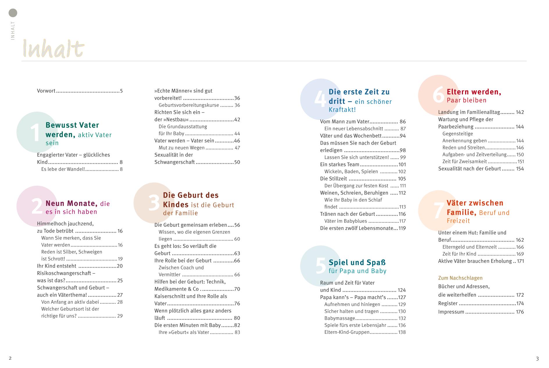 Hinweis zur OptimierungEin neues Leben mit neuen HerausforderungenBewusst Vater werden, aktiv Vater seinNeun Monate, die es in sich habenDie Geburt des Kindes ist die Geburt der FamilieDie erste Zeit zu Dritt - ein Schönerkraftakt!Spiel und Spass für Papa und BabyEltern werden,Paar bleibenVäter zwischen Familie, Beruf und FreizeitVäter- HighlightsBücher und Adressen, die weiterhelfenDie AutorenImpressum