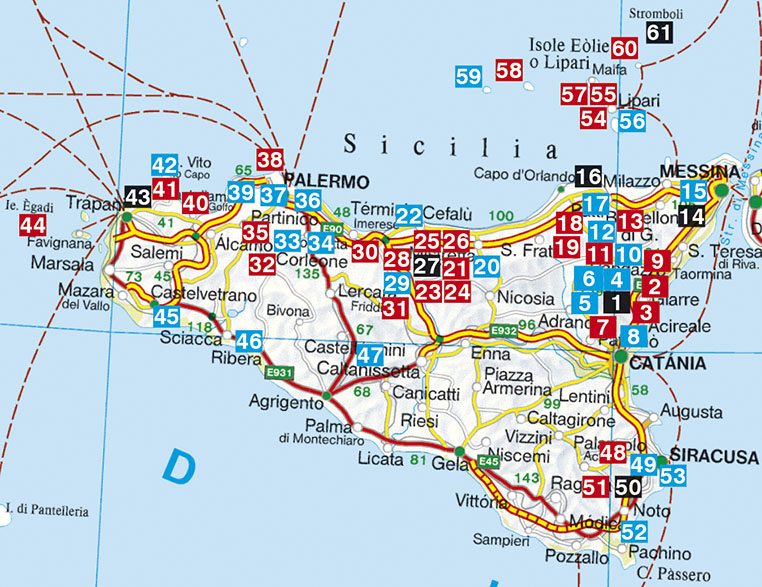 Die Auswahl reicht von leichten Bade-Wanderungen bis zu anspruchsvollen Bergtouren. Sie führt durch einsame Naturschutzgebiete, zu antiken Orten, an Strände am türkisenen Meer und auf die Liparischen Inseln vor der Nordküste Siziliens. Zwischen See- und Gebirgsklima findet sich hier ein Wanderrevier für das ganze Jahr.