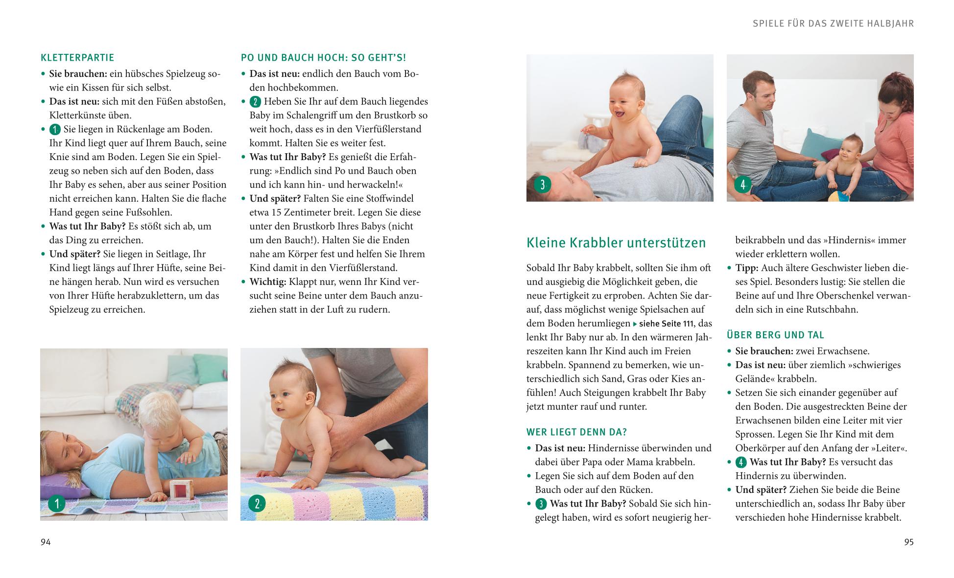 Hinweis zur OptimierungEin Wort zuvorDas erste gemeinsame JahrSpiele und AnregungenSchönes zum SpielenPEKiPBabys Meilensteine im ersten HalbjahrBabys Meilensteine im zweiten HalbjahrBücher, die weiterhelfenAdressen, die weiterhelfenDie AutorinWichtiger HinweisImpressum
