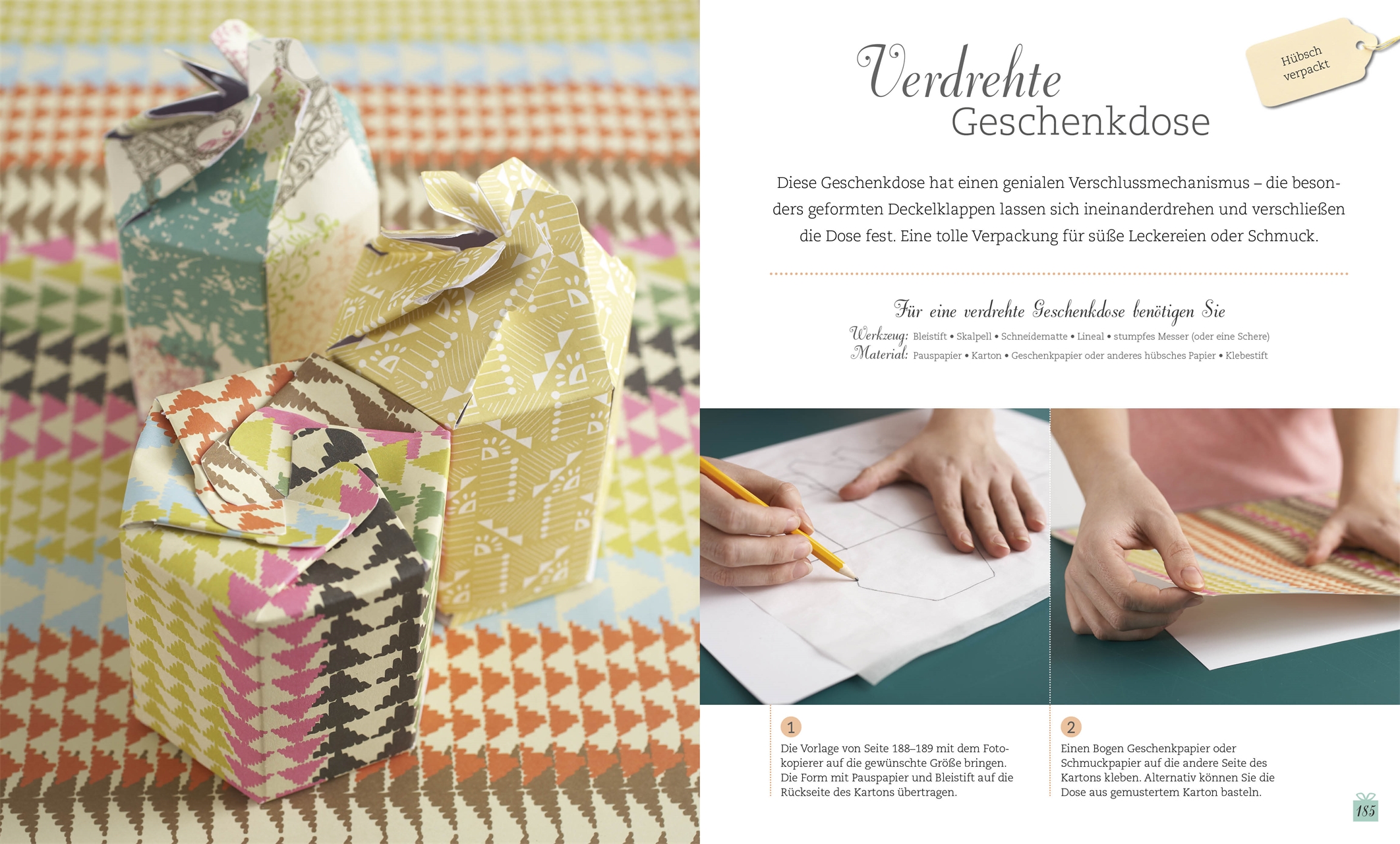 Einzigartig und selbstgemacht: Sie möchten etwas Persönliches verschenken, das von Herzen kommt? Hier finden Sie Inspiration für perfekte Geschenke! Dieses Buch ist eine wahre Ideen-Fundgrube für handgemachte Unikate. Ob verzierte Kissen, Découpage-Armreifen, Smartphone-Hülle, duftende Seifen, Katzenspieldecke, Mosaik-Schale oder bedruckte Taschen - mit den vielen verschiedenen Projekten für Accessoires, Schmuck, Verwöhngeschenke oder fürs Zuhause hat die Suche nach dem richtigen Präsent ein Ende. Alle Projekte werden von genauen Schritt-für-Schritt-Anleitungen und -Fotos begleitet und sind auch ohne Vorkenntnisse leicht zu realisieren. Die Vorlagen im Anhang ermöglichen eine unkomplizierte Umsetzung mit professionellem Ergebnis. Viele Vorschläge für Varianten lassen Raum für individuelle Gestaltung und eine persönliche Note, so dass man die Projekte den Vorlieben des Beschenkten anpassen kann. Als besonders schönes Extra können Sie mit dem Kapitel zu Geschenkverpackungen auch noch hübsche Schachteln, Tüten oder bedrucktes Papier herstellen. Bleibt nur die Frage, was mehr Spaß macht - das Basteln oder das Verschenken?