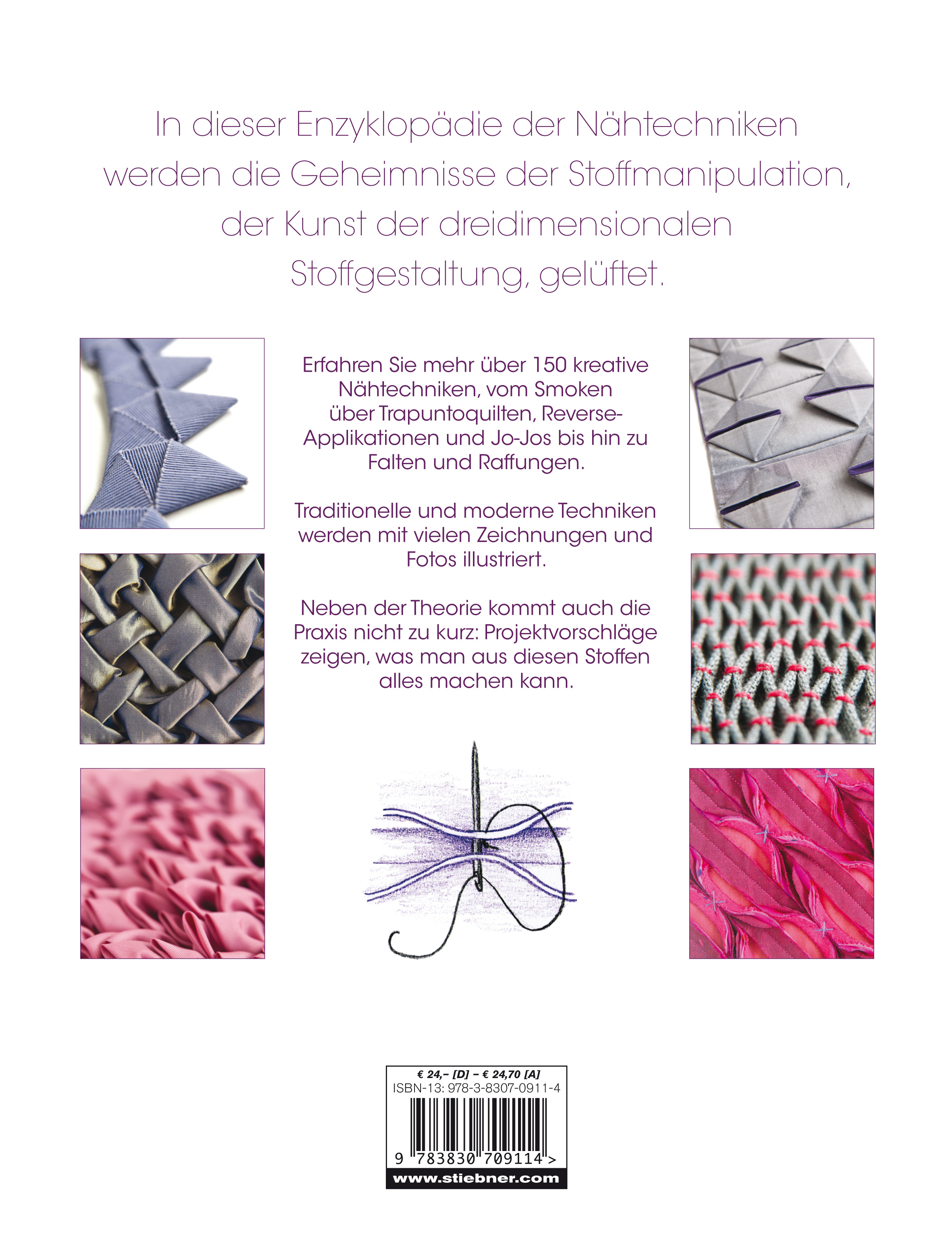 Kein Stoff gleicht dem anderen und daher sind auch beim Nähen kreative Verarbeitungsmöglichkeiten gefragt: Die vielfach prämierte Autorin Ruth Singer lädt mit diesem Band zum Experimentieren ein und gibt ihre langjährige Erfahrung weiter. Die vorgestellten Grundtechniken für spannende Raffungen, raffinierte Applikationen oder dekorative Falten sollen dazu anregen, neue Kombinationen zu wagen und auch ungewöhnliche Wege in der Verarbeitung zu gehen. Ob Quilten oder Smoken - der Fantasie sind keine Grenzen gesetzt und die Umsetzung der 150 hier präsentierten Techniken aufgrund der präzisen Erläuterungen ein Leichtes.