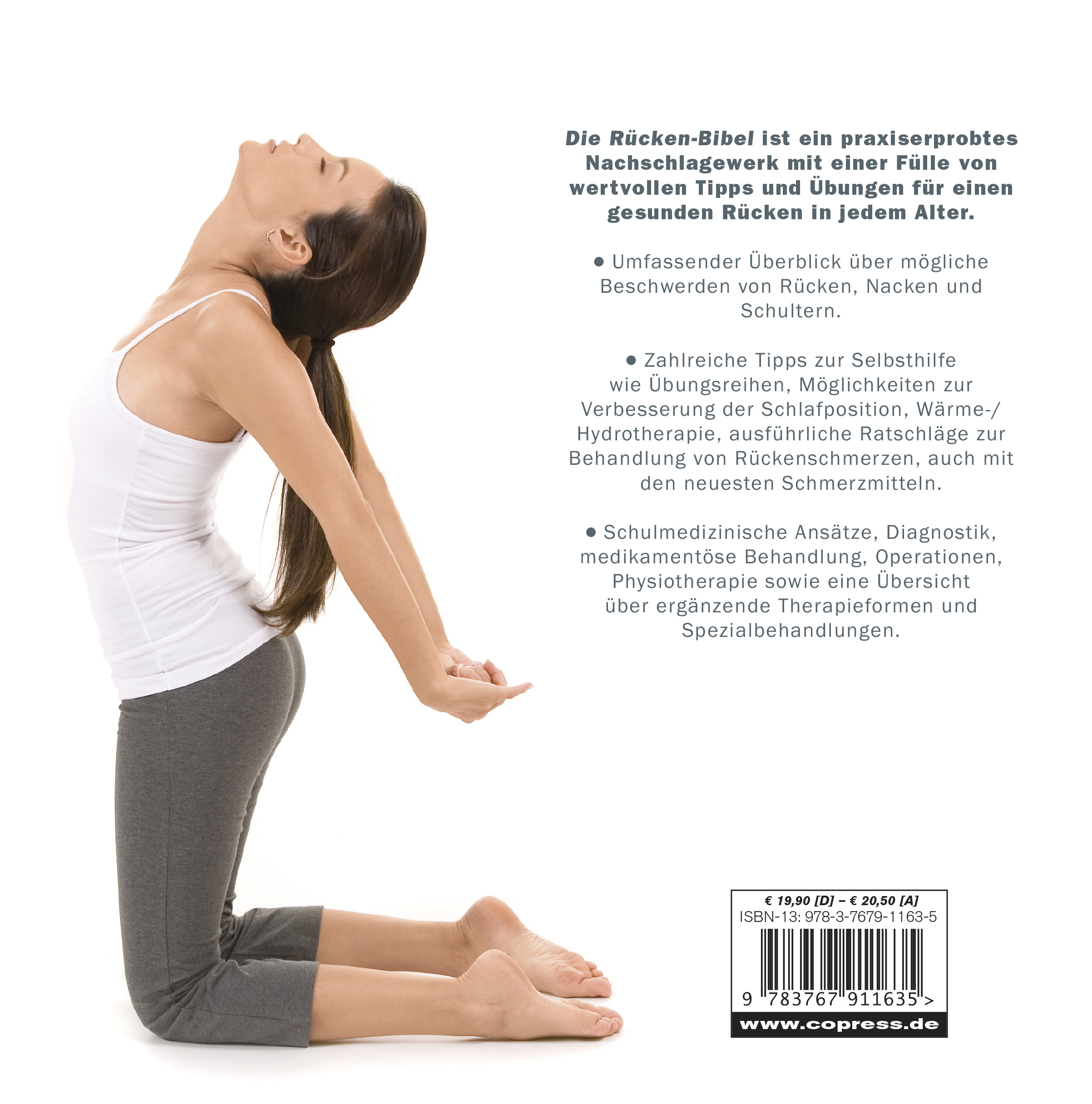 - Bebilderte Anleitungen für Übungen für den oberen Rücken, den mittleren und unteren Rücken sowie Entspannungsübungen für Nacken und Schultern