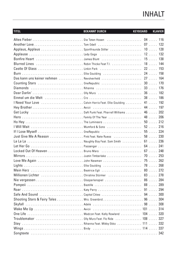 | Schlagworte | CD • Charts • Charts (Musik) • Keyboard • Klavier • Musikalien Rock/Pop/Jazz; Keyboard (Sammlungen) • Musikalien Rock/Pop/Jazz; Klavier/E-Piano (Sammlungen) • Musikalien Rock/Pop/Jazz; Klavier/Gesang/Gitarre (Sammlung) • Noten (Musik) • Songbooks |