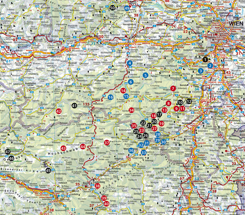 | Schlagworte | Bahn und Bus • Donau • Enns • GPS • Hochschwab • Mur • Niederösterreich • Öffentliche Verkehrsmittel • Ötscher • Reiseführer • Steiermark • Umweltfreundlich • Wanderbuch • Wanderführer • Wandern • Wien • Wiener Hausberge • Wiener Hausberge; Wanderführer |