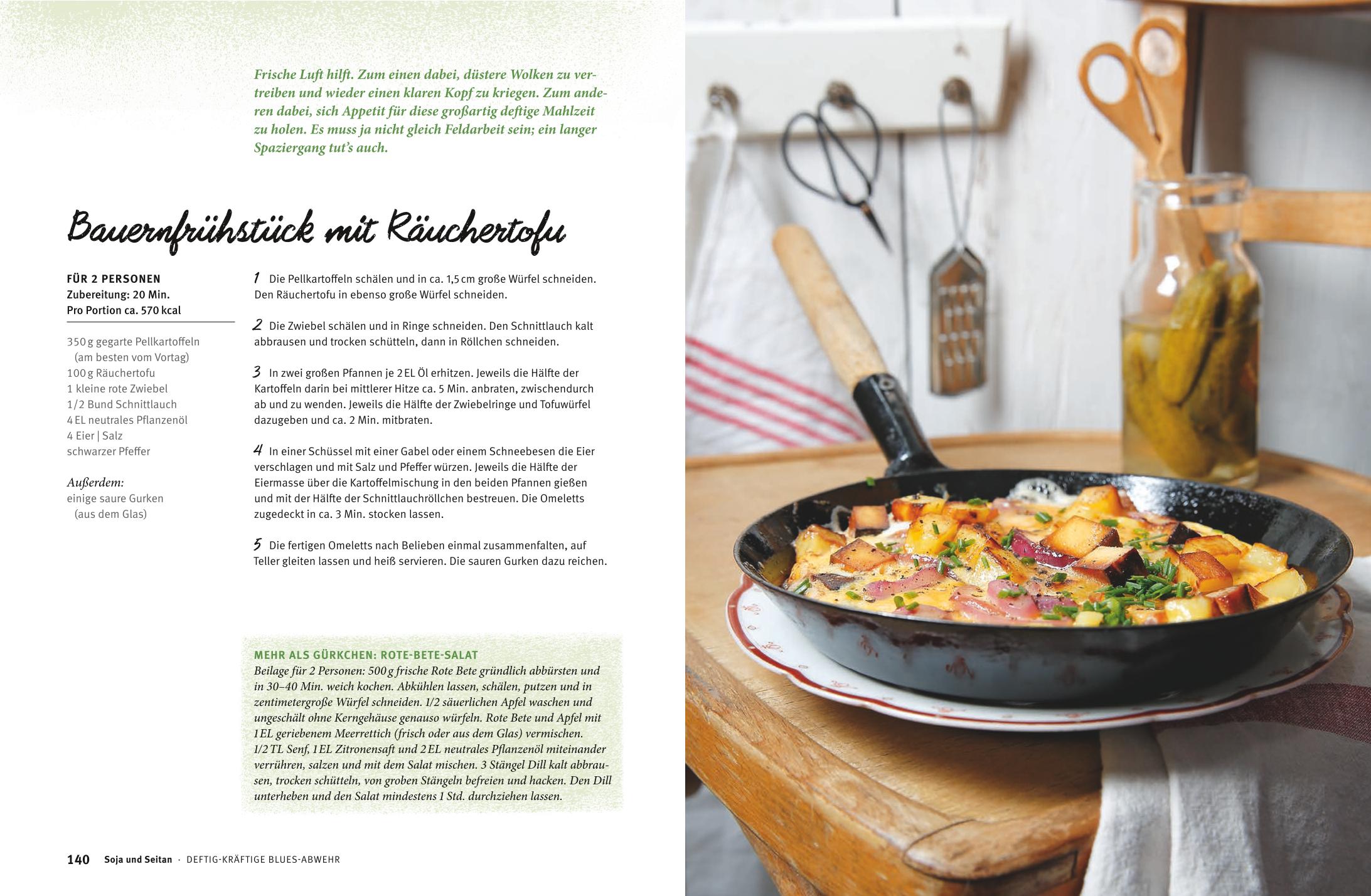 - Sonderseiten mit perfekten Soulfood-Paaren: warum z. B. Nudeln und Brühe oder Tofu und Sojasauce so perfekt zusammenpassen und guttun - plus vier bis fünf Kurzrezepte.
