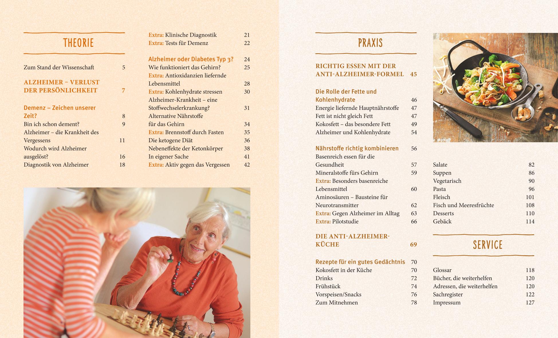 Die Angst, einmal an Alzheimer zu erkranken, ist groß. Doch eine neue wissenschaftliche Strategie macht Hoffnung: Untersuchungen lassen bestimmten Nahrungsbestandteilen eine bedeutende Rolle in der Prävention und Therapie von Demenzerkrankungen zukommen: Sogenannte Ketonkörper, die vor allem aus dem Stoffwechsel von mittelkettigen Fettsäuren enstehen, dienen dem Gehirn als wichtige Energiequelle, und es zeigte sich, dass die Zufuhr dieser Fette eine deutliche Verbesserung bei Alzheimer bewirken kann. Einziger Nachteil: Ketonkörper können zu einer Übersäuerung des Körpers führen. Um dies zu vermeiden, bedarf es einer basischen Ernährung. Im 1. Kapitel wird beschrieben, wie sich Alzheimer äußert und welche Symptome auftreten. Im 2. Kapitel wird erklärt, in welchen Lebensmitteln mittelkettige Fettsäuren enthalten sind und wie man eine ausreichende Zufuhr sicherstellt. Der 3. Teil des Buches enthält über 70 leckere Rezepte, mit denen man Alzheimer effektiv entgegentritt.