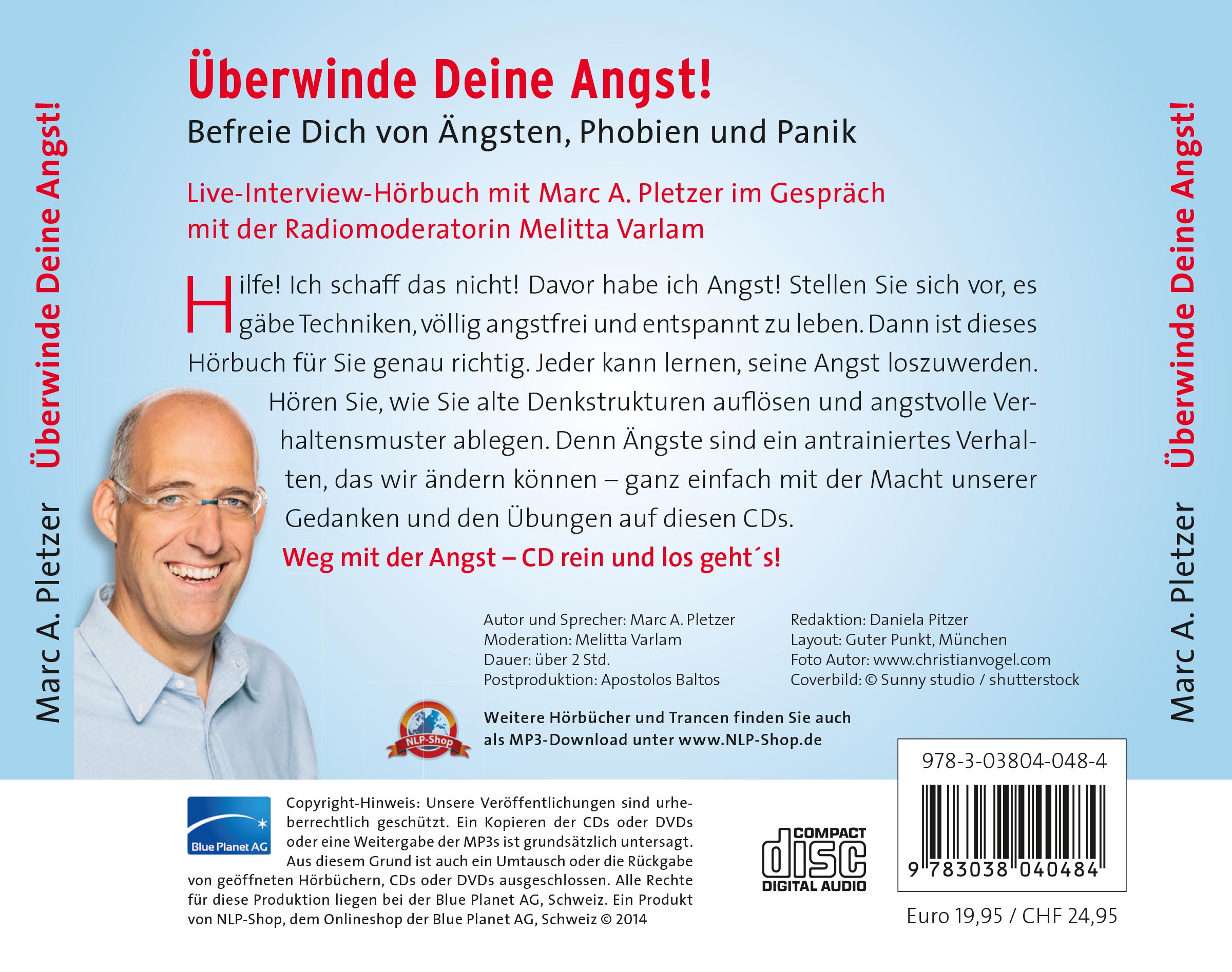 Allen anderen bringt das neue Hörbuch von Marc A. Pletzer den "Kick" in die richtige Richtung: Überwinden Sie Ihre Angst und machen Sie sich frei von Ängsten, Phobien und Panik. Den Titel des Hörbuchs auf zwei CDs meint Bestsellerautor Marc A. Pletzer ernst und ist sogar überzeugt, dass es leicht ist, angstfrei und entspannt zu werden. Im lockeren Ton erklärt der Profi in diesem Hörbuch der Moderatorin Melitta Varlam und allen Hörern, wie wir unser Denken ändern dürfen, um angstfrei leben zu können.