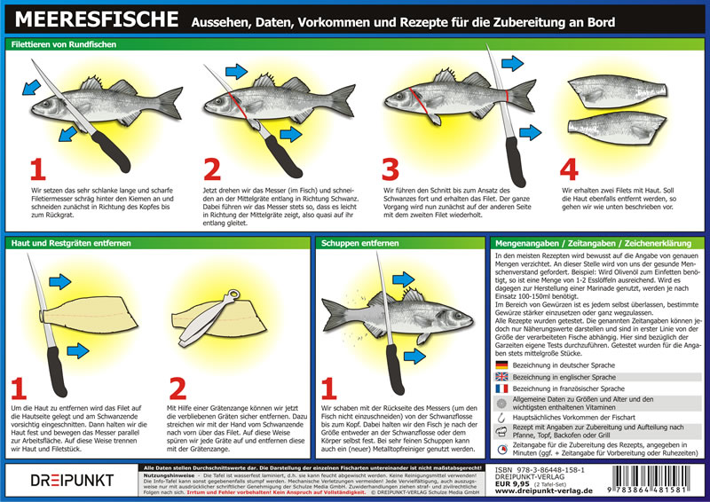 | Schlagworte | Angeln • Blauwasser • Bootsreise • Dreipunkt • Dreipunkt-Verlag • Essbare Fische • Essen an Bord • Fahrtensegeln • Fische • Fische fangen • Fischkunde • Info-Tafel • Meerbewohner • Meeresbewohner • Meeresfische • Meeresfische; Nonbooks • Nahrung auf See • Selbstversorger • Selbstversorgung • Versorgung an Bord |