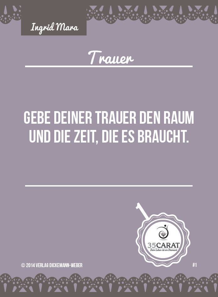 Bei den meisten Menschen stellt sich das Bedürfnis ein, über das Geschehene zu sprechen, die Erinnerungen an den geliebten Menschen hervorzurufen und den schmerzlichen Verlust zu verarbeiten. Die einfühlsamen Karten von 35Carat - TRAUER möchten dich bei deiner Trauerarbeit behutsam unterstützen. Die Kärtchen wollen dir helfen, deine seelische Stärke zurückzugewinnen, deine emotionale Balance wiederzufinden und dir den Glauben an eine Zukunft allmählich zurückzugeben. Besonders wenn das Umfeld um dich herum allmählich zur Tagesordnung zurückkehrt und du dich mit deinem Schmerz alleine gelassen fühlst, können die Karten hilfreich und tröstend sein.