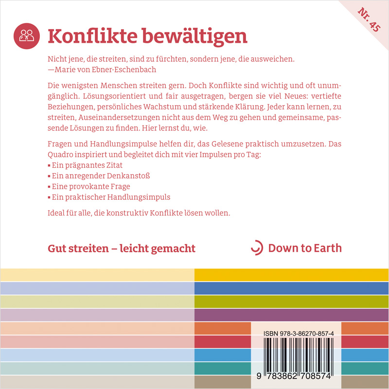 Konflikte bieten Chancen für Wachstum. Wer sie konstruktiv angeht, klärt und vertieft Beziehungen. Dieses Quadro gibt praktische Handlungsimpulse für konfliktreiche Situationen.