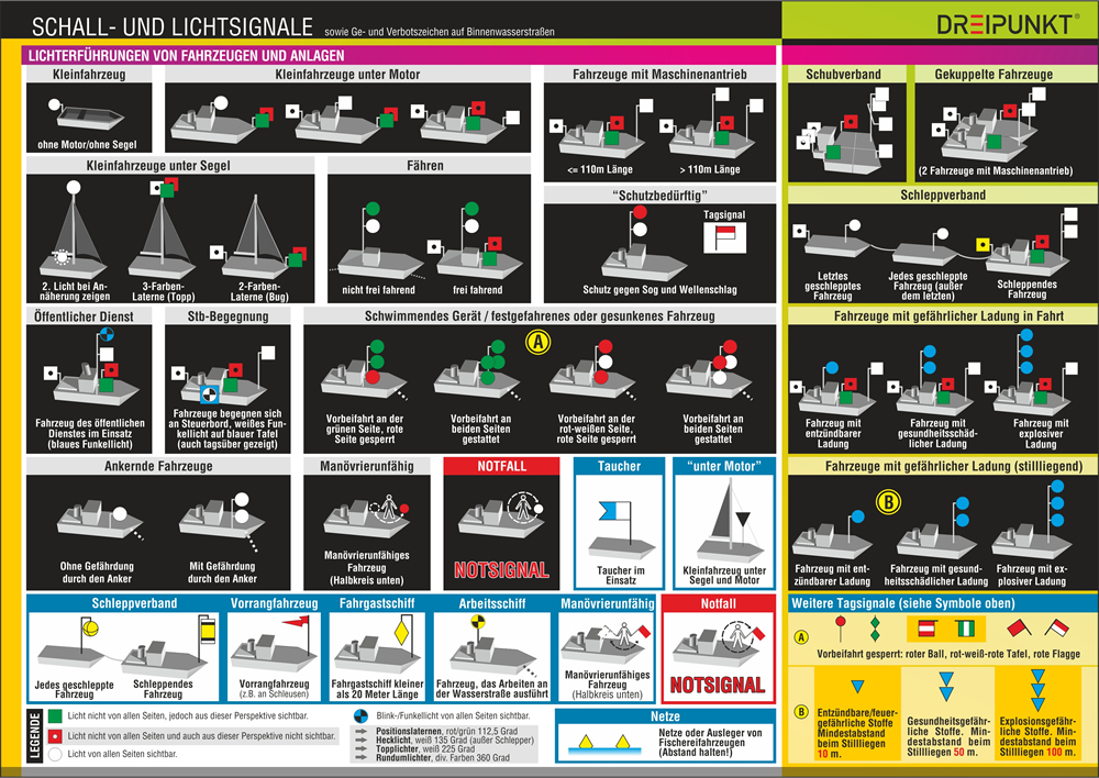 | Schlagworte | Binnen • Binnenwasser • Binnenwasserstraßen • Dreipunkt-Verlag • Gebot • Gebotszeichen • Info-Tafel • Lichterführung • Lichtsignale • Schallsignale • Schleusensignale • Signal (Schiffahrt); Nonbooks • Verbot • Verbotszeichen |