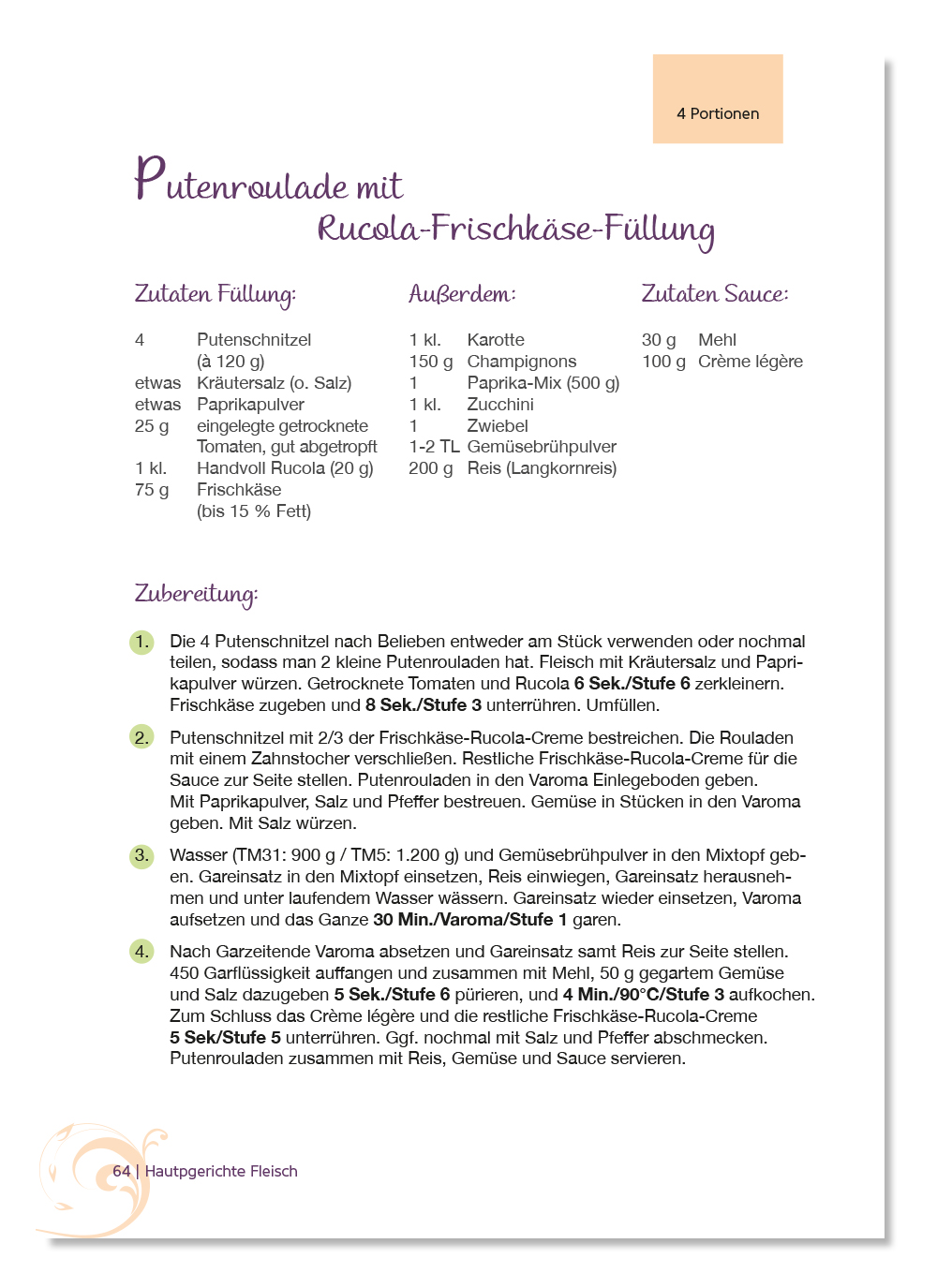 Putenroulade mit Rucola-Frischkäse-Füllung