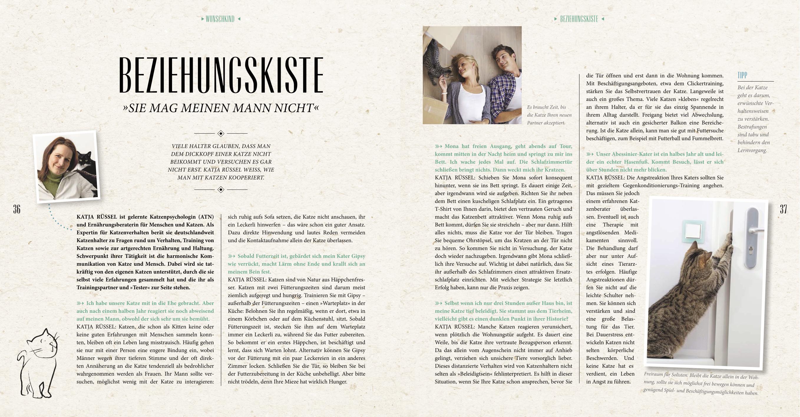 Mein neuer Mitbewohner, die erste Katze. Wenn sich der Traum einer eigenen Katze erfüllt, sind meist noch viele Fragen offen. Dieser außergewöhnliche Ratgeber vermittelt jungen Katzen-Erstbesitzern die Basics der Katzenhaltung - mit einem Augenzwinkern und ohne erhobenen Zeigefinger, in frischer Optik und mit witzigen, inspirativen Fotos. Von Kauf und Einzug des neuen Familienmitglieds über Infos zur richtigen Ernährung und Pflege bis hin zur Beschäftigung werden alle wichtigen Fragen zum neuen Haustier praxisnah und übersichtlich beantwortet. Erlebnisberichte, Interviews und Reportagen geben einen lebensnahen Einblick in den Alltag mit Katze. Aber auch das Verwöhnprogramm kommt nicht zu kurz: Mit den kreativen kleinen Projekten zum Selbermachen und den leckeren Rezepten entstehen individuelle Geschenke für die erste eigene Samtpfote. So klappt es garantiert, das Leben mit Katze!