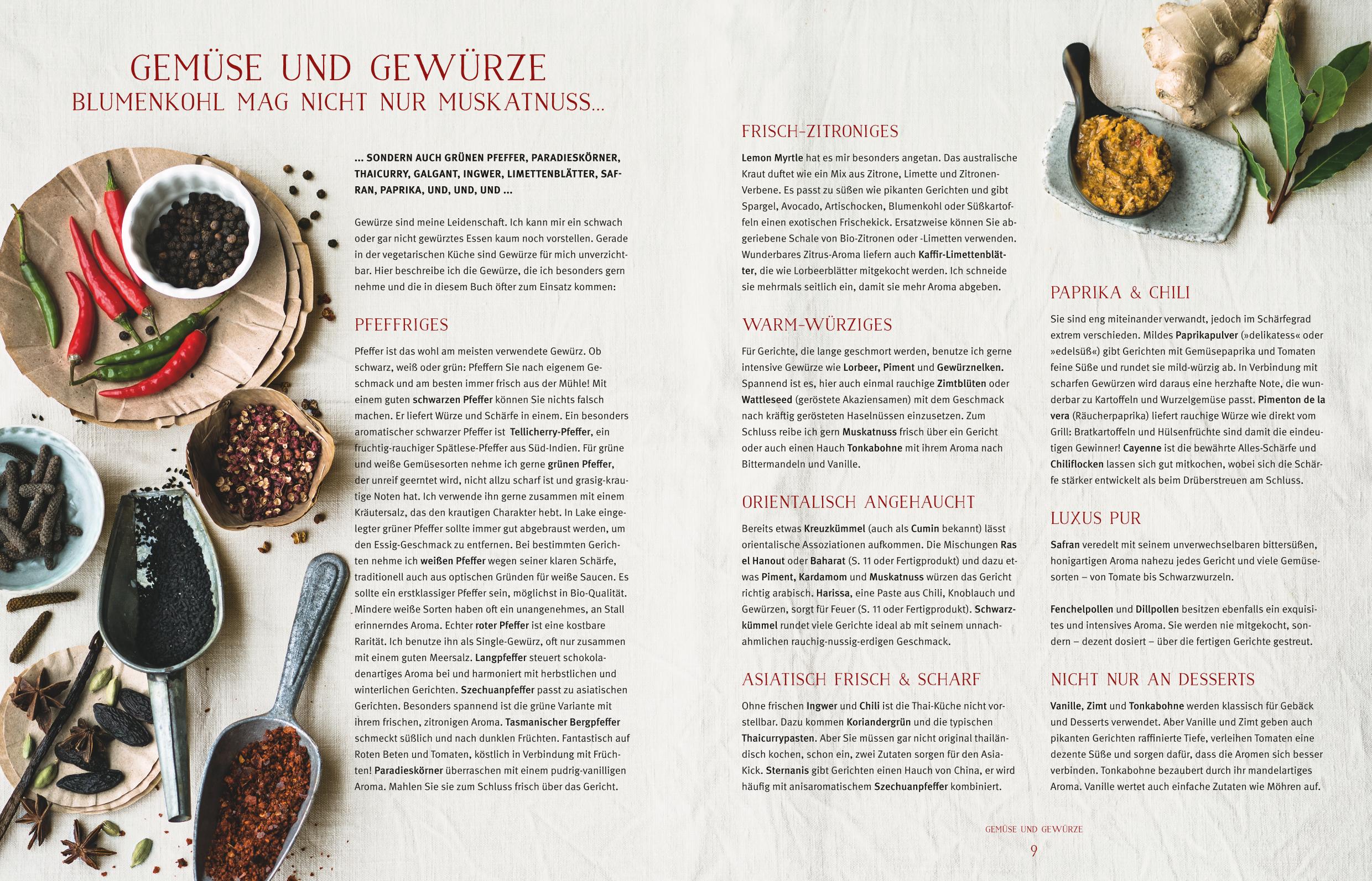 Gemüse und Gewürze: Eine kurze Vorstellung der im Buch verwendeten Gewürze mit einigen Rezepten für Gewürzmischungen.