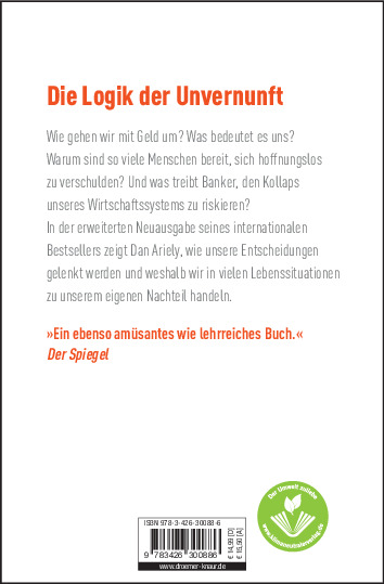 In der erweiterten Neuausgabe seines internationalen Bestsellers zur Verhaltenspsychologie zeigt Dan Ariely, wie wir in unserer Entscheidungsfindung manipuliert werden und weshalb wir in vielen Lebenssituationen zu unserem eigenen Nachteil handeln. Ariely entlarvt dabei nicht nur unsere Aufschieberitis, sondern erklärt anhand anschaulicher Beispiele aus dem Alltag, warum es uns nicht gelingt, zu tun, was wir wollen und warum uns Wahlmöglichkeiten daran hindern, unsere Ziele zu erreichen.