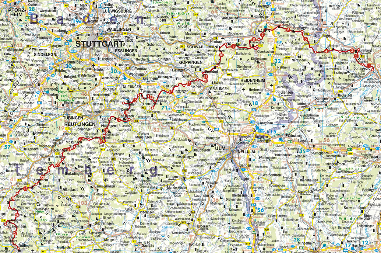 Nordrand-Weg (HW 1) - von Donauwörth bis Tuttlingen. 27 Etappen. Mit GPS-Tracks