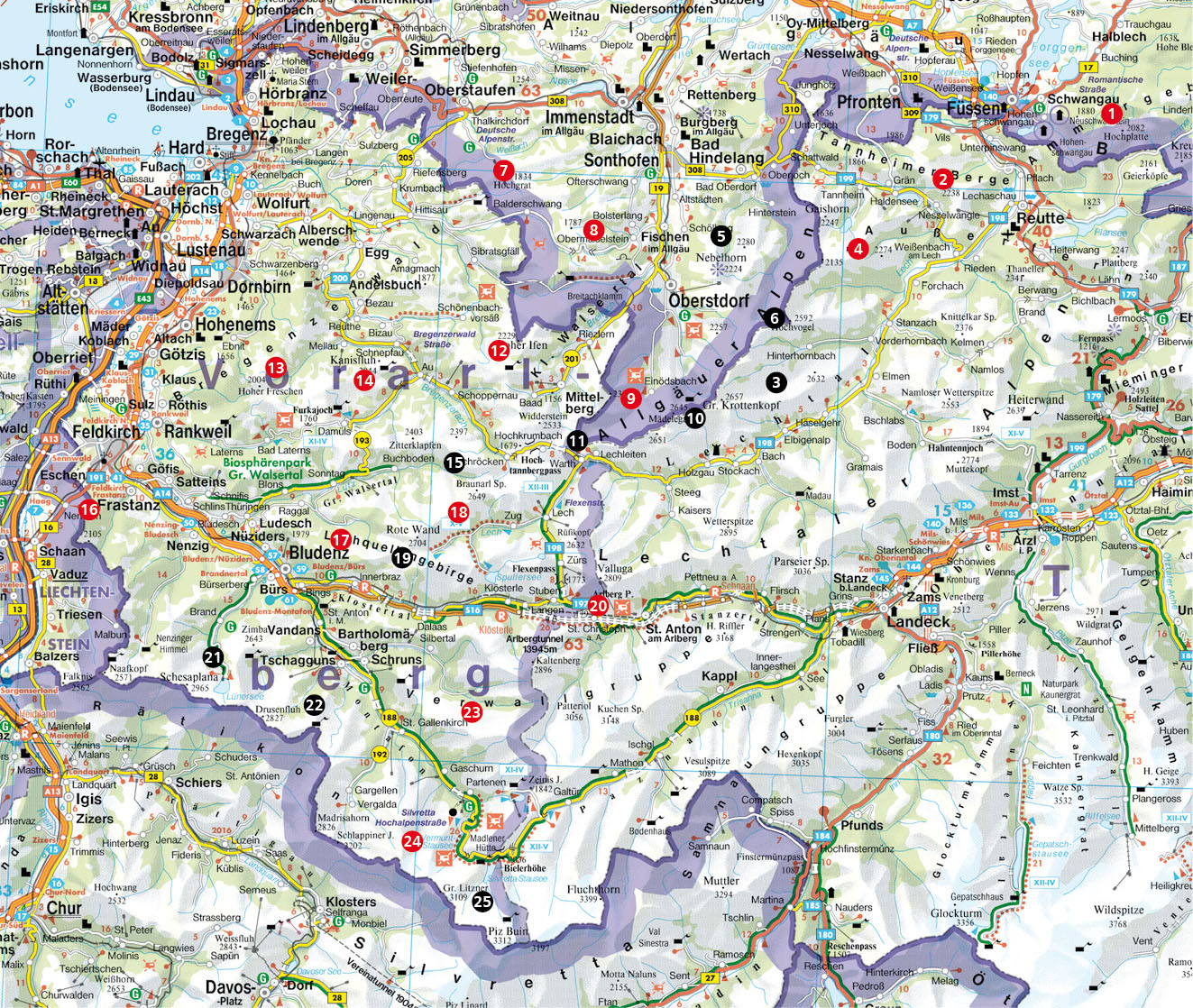 25 Touren zwischen Füssen und Montafon. Mit GPS-Daten