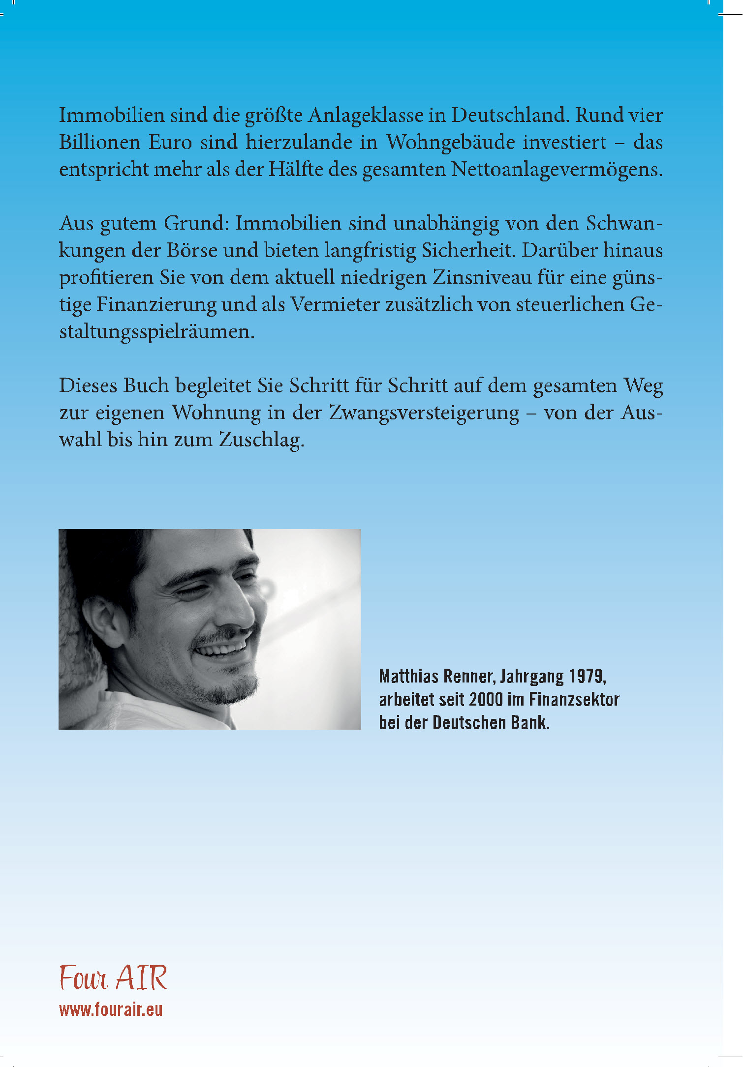 Dieses Buch begleitet Sie Schritt für Schritt auf dem gesamten Weg zur eigenen Wohnung in der Zwangsversteigerung – von der Auswahl bis hin zum Zuschlag.