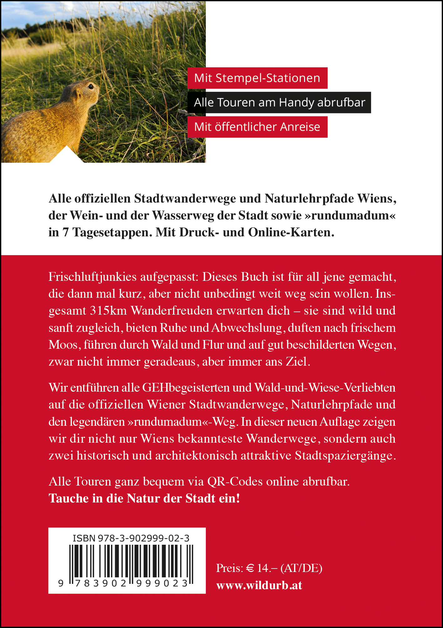 Alle offiziellen Stadtwanderwege und Naturlehrpfade Wiens, der Wein- und der Wasserweg der Stadt sowie »rundumadum« in 7 Tagesetappen. Mit Druck- und Online-Karten. Frischluftjunkies aufgepasst: Dieses Buch ist für all jene gemacht, die dann mal kurz, aber nicht unbedingt weit weg sein wollen. Insgesamt 315km Wanderfreuden erwarten dich - sie sind wild und sanft zugleich, bieten Ruhe und Abwechslung, duften nach frischem Moos, führen durch Wald und Flur und auf gut beschilderten Wegen, zwar nicht immer geradeaus, aber immer ans Ziel. Wir entführen alle GEHbegeisterten und Wald-und-Wiese-Verliebten auf die offiziellen Wiener Stadtwanderwege, Naturlehrpfade und den legendären »rundumadum«-Weg. In dieser neuen Auflage zeigen wir dir nicht nur Wiens bekannteste Wanderwege, sondern auch zwei historisch und architektonisch attraktive Stadtspaziergänge. Alle Touren ganz bequem via QR-Codes online abrufbar. Tauche in die Natur der Stadt ein!