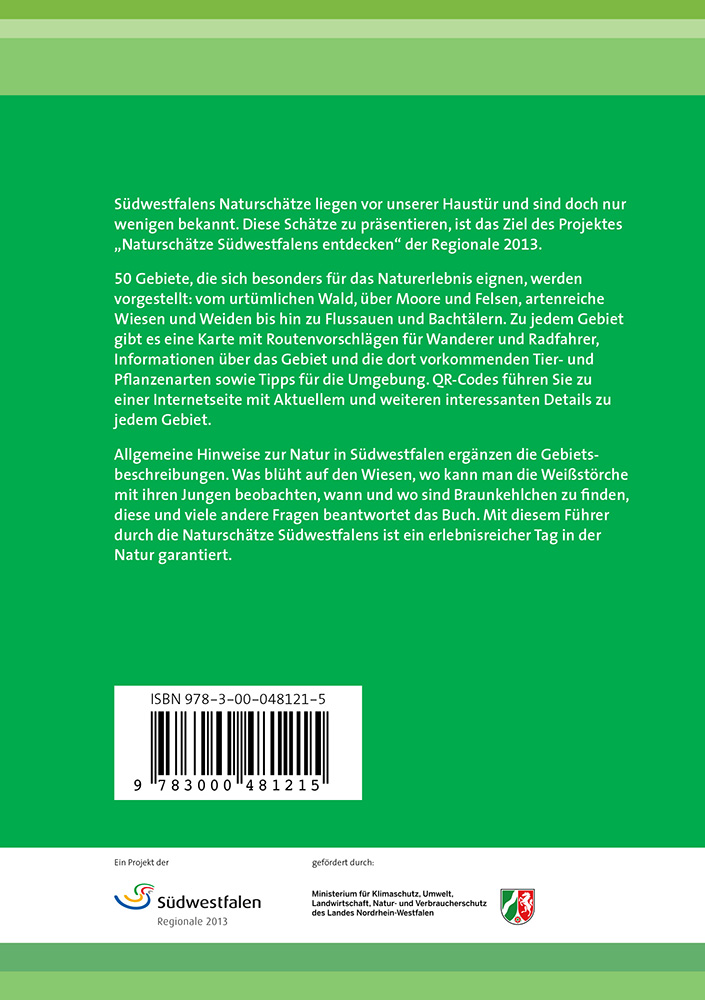 Von den Niederungen der Westfälischen Bucht bis in die Hochlagen des Südwestfälischen Berglandes finden wir in den Landschaften Südwestfalens zahlreiche Naturschätze. Vielfältige Projekte zur Entwicklung und Optimierung von Naturschutzgebieten sind in den vergangenen Jahren in der Region durchgeführt worden. Die attrativen Schutzgebiete entwickeln sich zunehmend zu Anziehungspunkten für an der Natur interessierte Menschen, doch allzu häufig sind sie nicht oder nur lokal bekannt.
