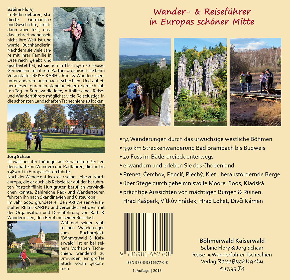 Sabine Flöry, in Berlin geboren, studierte Germanistik und Geschichte, stellte dann aber fest, dass das Lehrerinnendasein nicht ihre Welt ist und wurde Buchhändlerin. Nachdem sie viele Jahre mit ihrer Familie in Österreich gelebt und gearbeitet hat, ist sie nun in Thüringen zu Hause. Gemeinsam mit ihrem Partner organisiert sie beim Veranstalter REISE-KARHU Rad- & Wanderreisen, unter anderem auch nach Tschechien. Und auf einer dieser Touren entstand an einem ziemlich kalten Tag im Šumava die Idee, mithilfe von Reise- und Wanderführer möglichst viele Reiselustige in die schönsten Landschaften Tschechiens und Thüringens zu locken.