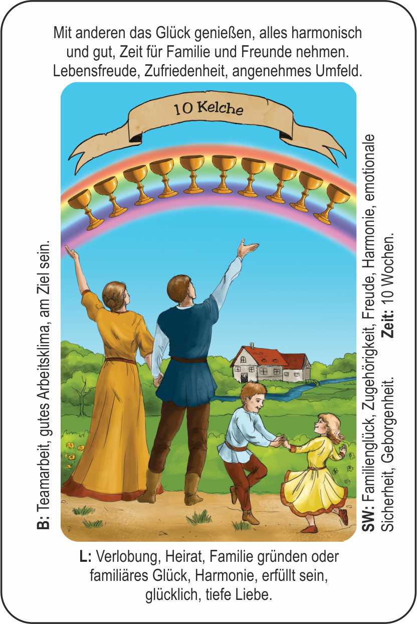 Die 78 Tarotkarten im modernen Design (vor allem die Personenkarten wurden eindeutiger gezeichnet). Dazu die Deutungshilfe für die Tarotkarten mit Schlüsselwörter, Zeitaussage, Zukunft, Ratschlag der Tarotkarte und worum es bei der Deutung der Tarotkarte genau geht. In Anlehnung an die klassischen Motive durch Farbgebung und Gestaltung werden die gleichen Deutungen wie z.B. beim Rider Waite ermöglicht. Ideal für Anfänger im Kartenlegen lernen mit Tarotkarten. Ein Video mit allen Tarotkarten-Motiven kann man sich hier ansehen: https://youtu.be/Cc5wSpT4znw