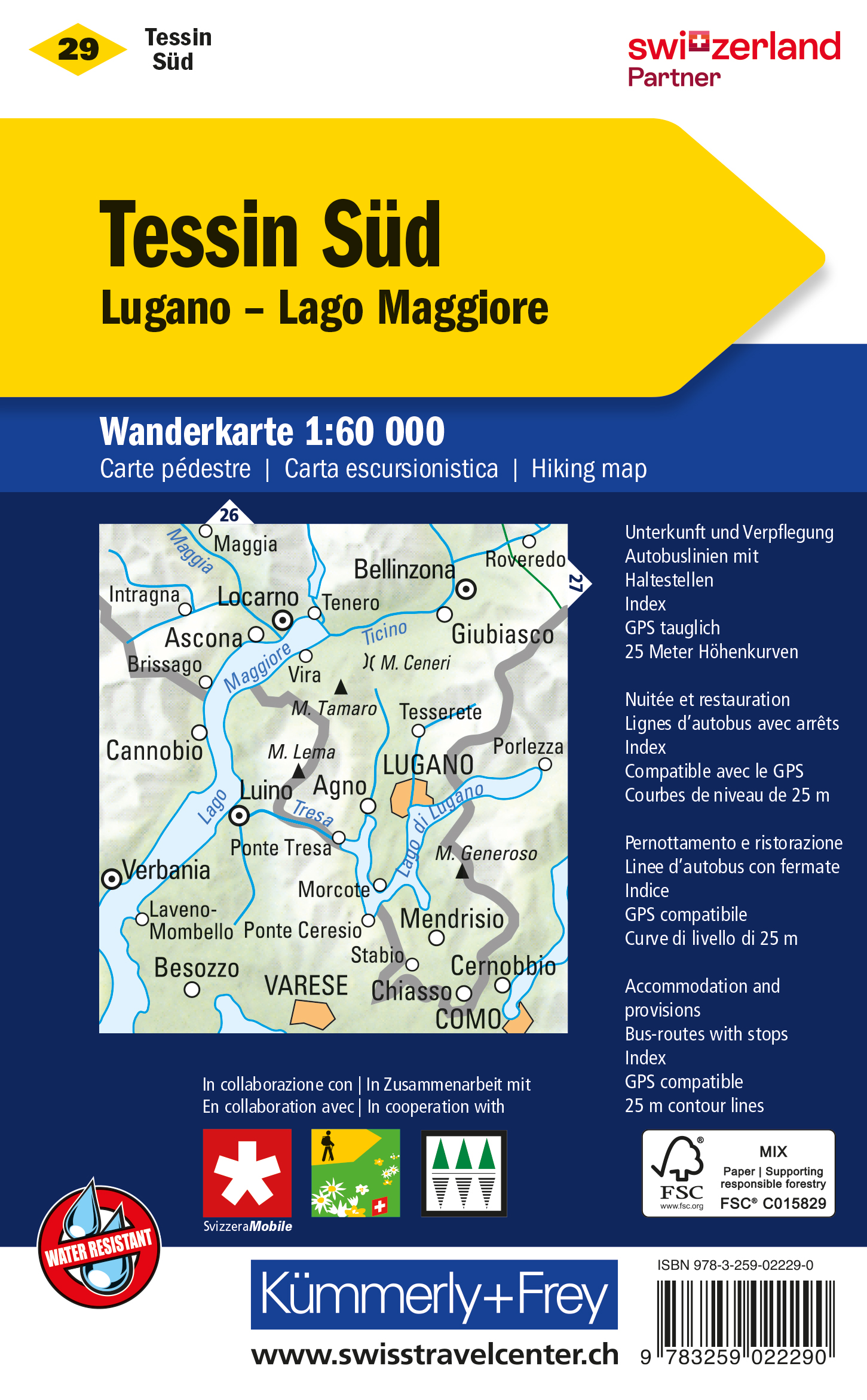 Kümmerly+Frey Wanderkarte 29 Ticino, Sottoceneri 1:60.000