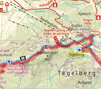 28 Kartenseiten à 18 x 20 cm, 21 redaktionelle Seiten Ein neues Wanderwegenetz stellt die Wandertrilogie Allgäu dar: Das neu geschaffene Weitwanderwegenetz verläuft in drei Höhenlagen und verbindet die komplette landschaftliche Vielfalt des Allgäus. Das Besondere der Wandertrilogie ist die Tatsache, dass es keine feste Route gibt, sondern drei Hauptrouten, die durch Verbindungswege beliebig kombiniert werden können. Dabei erzählen die Routen Geschichten zur Landschaft und Region, die auf die jeweiligen Etappen vorbereiten. Zu den Erlebnisräumen zählen der Schlosspark – das Gebiet rund um Füssen, die Glückwege, Naturschatzkammern, Wasserreiche, Panoramalogen, Alpgärten ebenso wie Gipfelwelten, Urkrafttäler und Heimatstätten. So wird der Facettenreichtum des Allgäus erlebbar. Die Himmelsstürmer-Route ist 333 km lang und verläuft in den Höhen der Allgäus durch abgeschiedene Natur und schroffe Gebiete. Sie richtet sich an sportlich ambitionierte Wanderer, die ihre Ausdauer und Fitness in der Abgeschiedenheit und Natur der Gipfelwelten testen wollen. Die Himmelsstürmer-Route überwindet zahlreiche Höhenmeter.