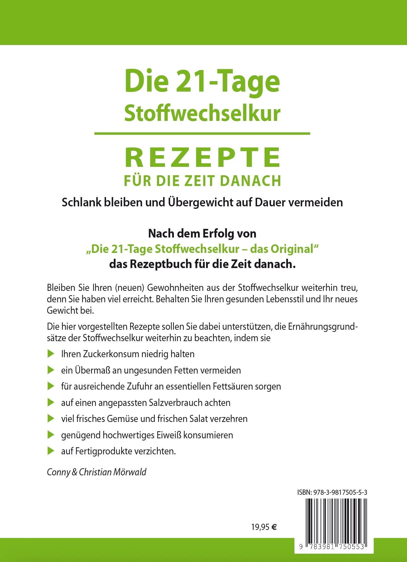 Dieses Kochbuch ist die perfekte Fortsetzung des Bestsellers "Die 21-Tage Stoffwechselkur - das Original". Aufgrund der zahlreichen positiven Rückmeldungen zur Stoffwechselkur war es nur folgerichtig, ein zweites Buch zu veröffentlichen. Es bietet eine Vielzahl von Rezepten für eine gesunde Lebensweise und Gewichtsregulierung - von Frühstücksideen über Hauptgerichte bis hin zu weihnachtlichen Kreationen, vegetarischen Optionen und köstlichen Smoothies. Zudem gibt es einen kurzen Überblick darüber, wie die Kur funktioniert.