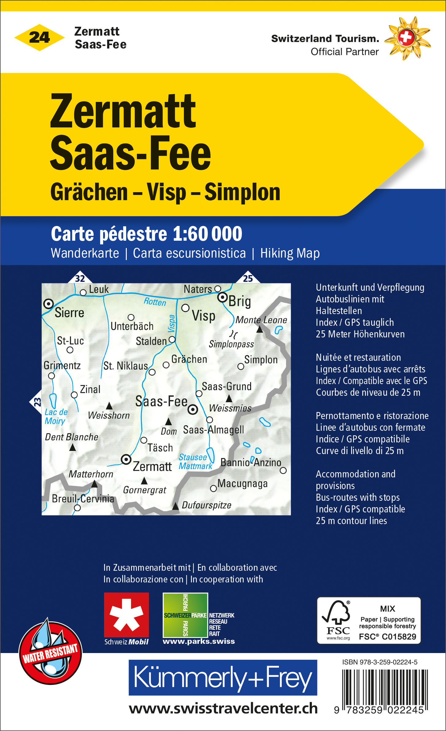 Mit Grächen, Visp und Simplon. Wetterfest, matt laminiert und mit free Download