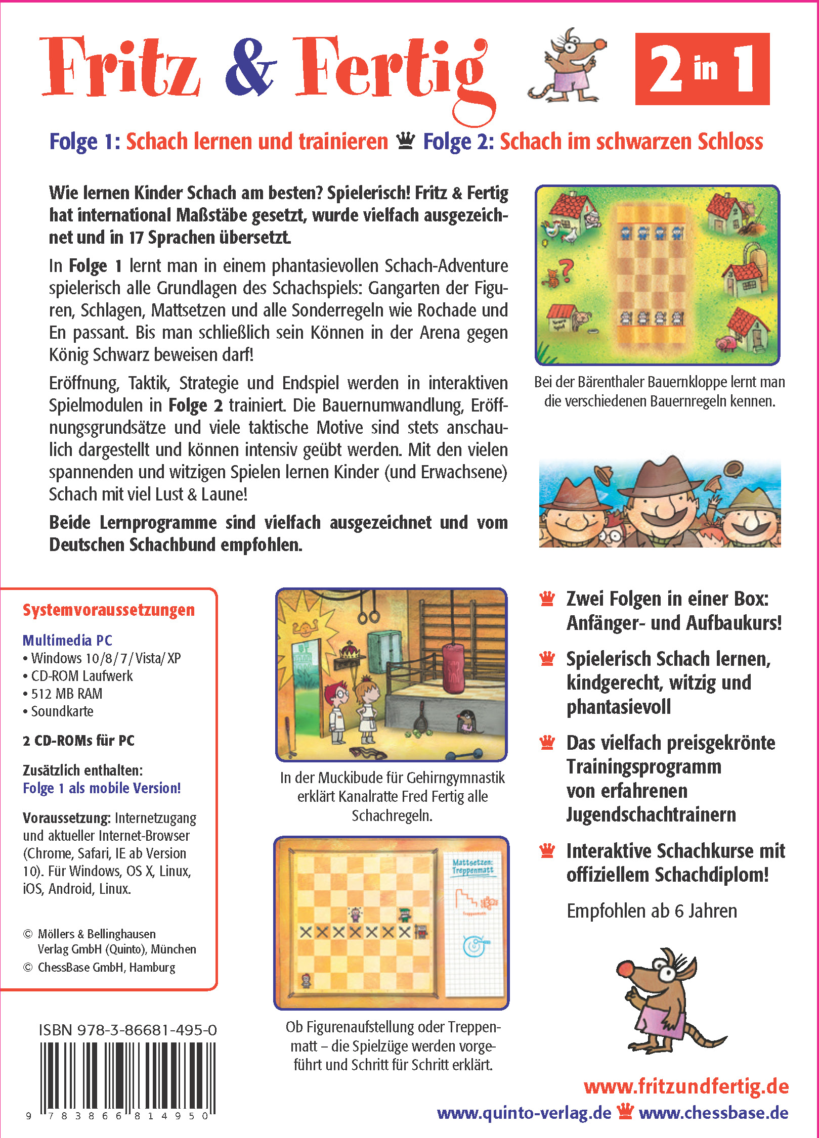 | Schlagworte | Fritz (Schachprogramm) • Fritz (Schachprogramm für Kinder/Jugendliche) • Kinderlernsoftware • Kinderschach • Schach • Schach; Kindersachbuch/Jugendsachbuch • Schach; Lernsoftware • Schachtraining • Wettkampfsport und andere Sportarten |