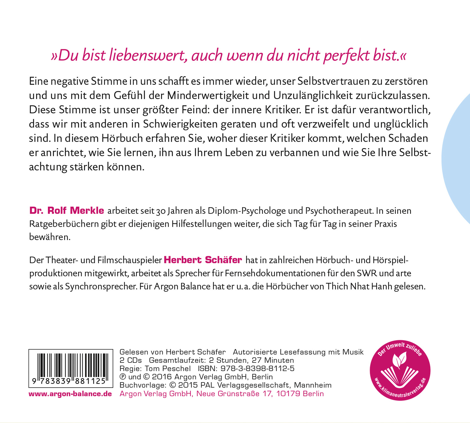 | Schlagworte | innerer Kritiker • Mut • Positiv • Selbstachtung • Selbstliebe • Selbstvertrauen • Selbstvertrauen; Ratgeber • Selbstwertgefühl • Vertrauen |