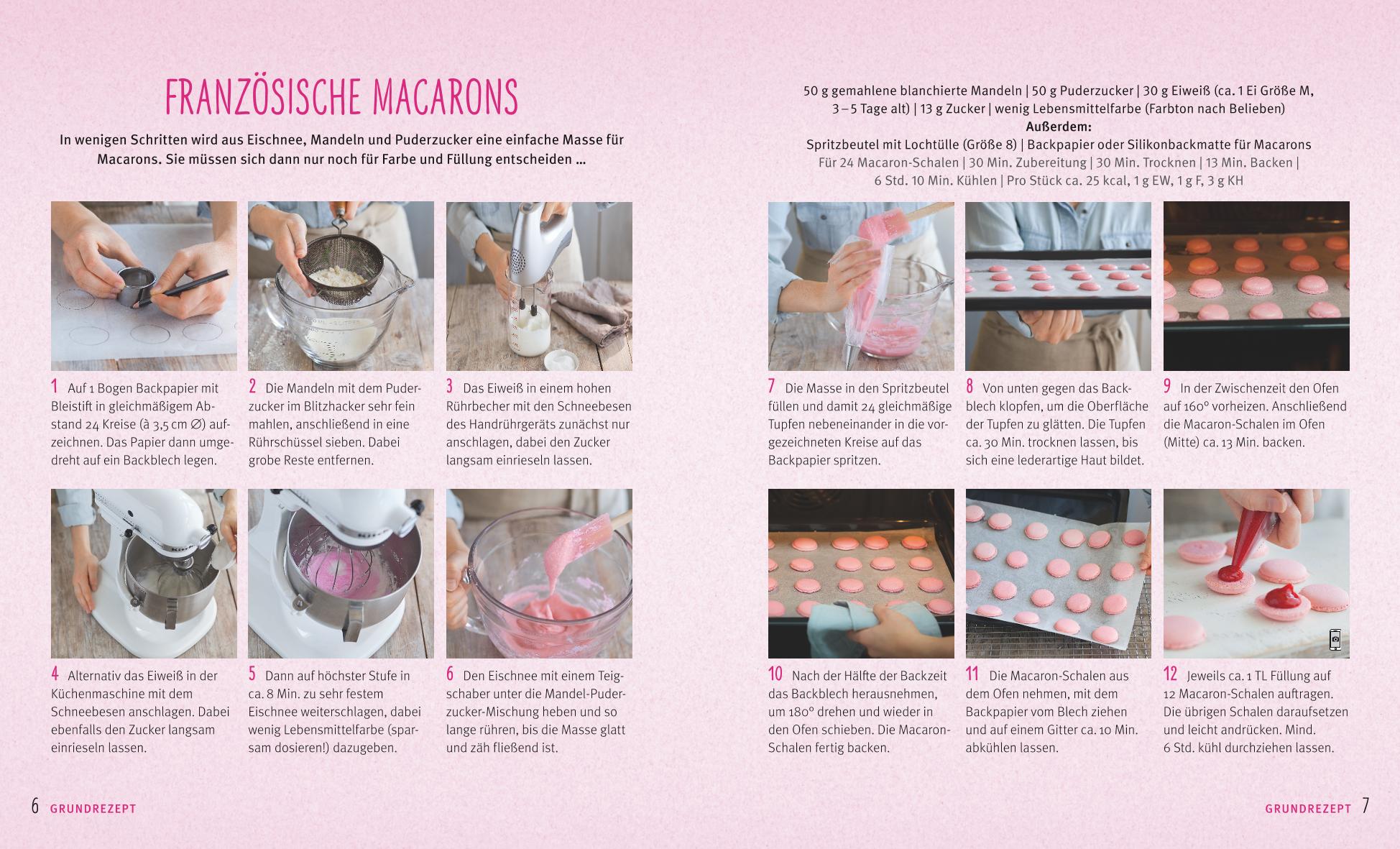 Bunt, verführerisch und unendlich vielfältig: Das sind Macarons, die feine französische Verwandtschaft der altbekannten Makronen. Früher bei uns nur hier und da zu haben, bringen sie inzwischen Farbe und Glanz in die Auslage jeder guten Confiserie. Jetzt haben auch Hobby-Konditoren Macarons für sich entdeckt - kein Wunder, denn sie sorgen zwischen Marmorkuchen und Hefezopf für richtig Furore auf der Kaffeetafel! Das Beste: Mit den exakten Rezepten und Tricks vom Macaron-Spezialisten gelingt das zarte Gebäck jetzt auch Ihnen. Mit nur wenigen Zutaten können Sie sofort loslegen und die farbenfrohen Baiserküsschen kreieren. Ob klassisch schokoladig, mit üppiger Buttercreme oder ganz fruchtig gefüllt - Macarons sind wahrhaft ein zartes Stück vom süßen Glück!