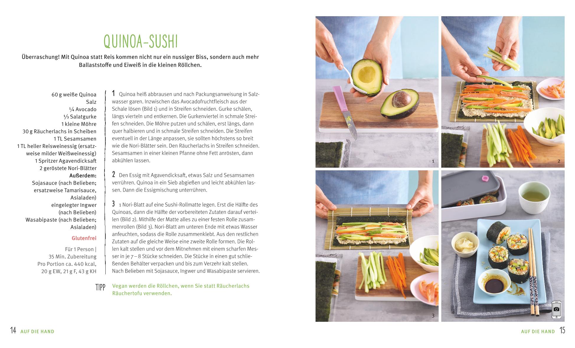 Wer kennt das nicht? Dauerstress im Büro und keine Zeit für lange Mittagspausen. Also schnell was aus der Kantine oder vom Bäcker geholt, noch schneller gegessen und hinein ins Nachmittagstief! Geht es auch anders? Es geht: Essen Sie ruhig weiter Fastfood - aber bitte aus Superfoods! Denn das sind echte Nährstoffhelden: Sie halten Kopf und Körper fit und stärken die Abwehrkräfte. Das Tolle: Nicht nur Exoten wie Goji-Beeren und Hanfsamen bieten diese Benefits, auch alte Bekannte wie Grünkohl, Spinat, Heidelbeeren und viele mehr sorgen für das tägliche Gesundheits-Plus. Und das in so verführerischen Rezepten wie Linsen-Falafel im Pita-Brot, Rote-Bete-Mandel-Couscous und Hähnchen-Bagel mit Physalis-Chutney. Egal also, wie kurz Ihre Mittagspausen sind: Dank Superfoods to go sind Sie satt, glücklich und voller Energie!