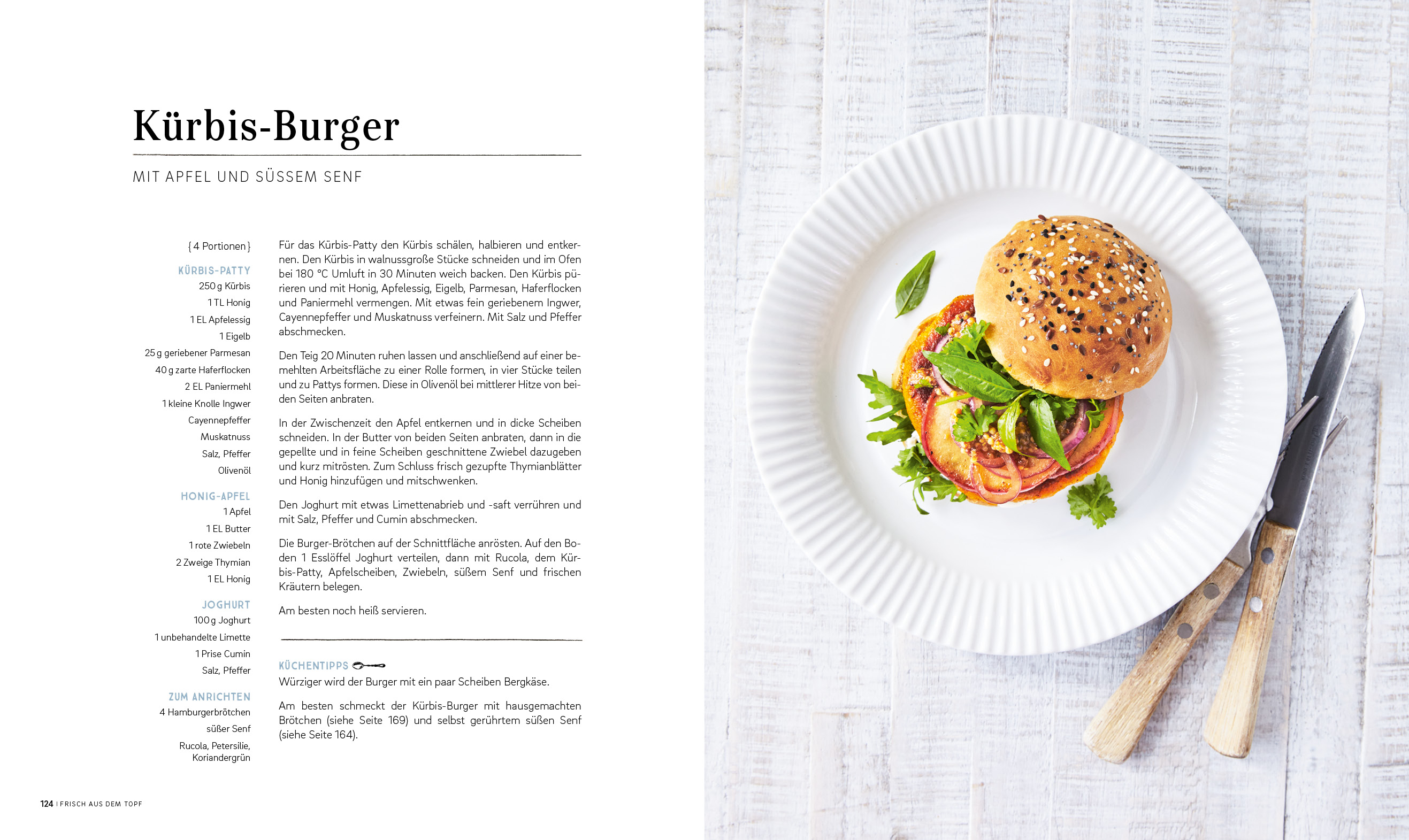 Mit über 40 raffinierten Rezepten und nur wenigen Handgriffen lässt sich aus der eigenen Ernte dann ein köstlicher Gaumenschmaus zaubern. Originelle Snacks, vegetarische Köstlichkeiten, verführerische Desserts - für jeden Genießer ist bestimmt das passende Gärtnermahl dabei. Die Rezepte reichen von kaltem Gurkensüppchen mit Buttermilchschnee, pikantem Paprika-Relish mit gegrilltem Steak über herzhafte Zucchini-Waffeln mit Kräuterquark bis hin zu süßem Beeren-Mousse mit Schokoladenerde. Und wenn am Wochenende mehr Zeit zum Kochen bleibt, können mithilfe der Grundrezepte z.B. auch eigene Burger-Buns oder frische Pasta hergestellt werden.