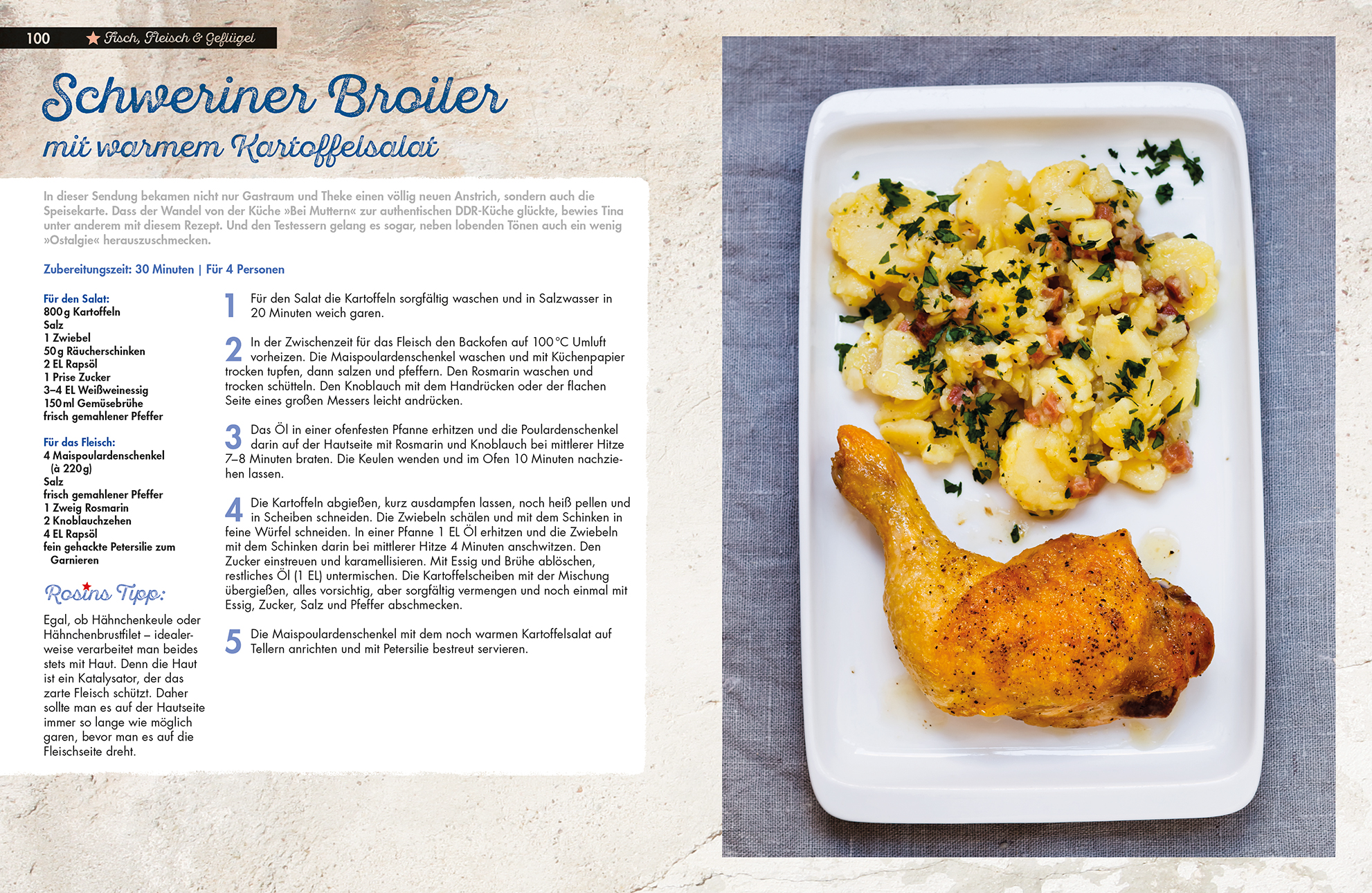 Bodenständig, unkompliziert, aber raffiniert geht es zu, wenn Sternekoch Frank Rosin in seiner TV-Sendung "Rosins Restaurants" mit viel Know-how und Leidenschaft Restaurantbesitzern in der Krise wieder auf die Beine hilft. In der Sendung wird gelacht, geweint, aufgeräumt und renoviert, vor allem aber gekocht. Die besten Rezepte gibt es nun in diesem Buch zum Nachkochen und Genießen, wie Kartoffelsuppe mit Cabanossi, Spaghetti napoletana, Türkische Pizza, Moussaka, Kalbsschnitzel mit Pilzpfanne, Tote Oma Franky's Style oder Bayerisch Creme mit Kirschen. Der charmante Sternekoch verrät in seinem Buch viele Profi-Tricks und Kniffe für einen sicheren Kocherfolg.