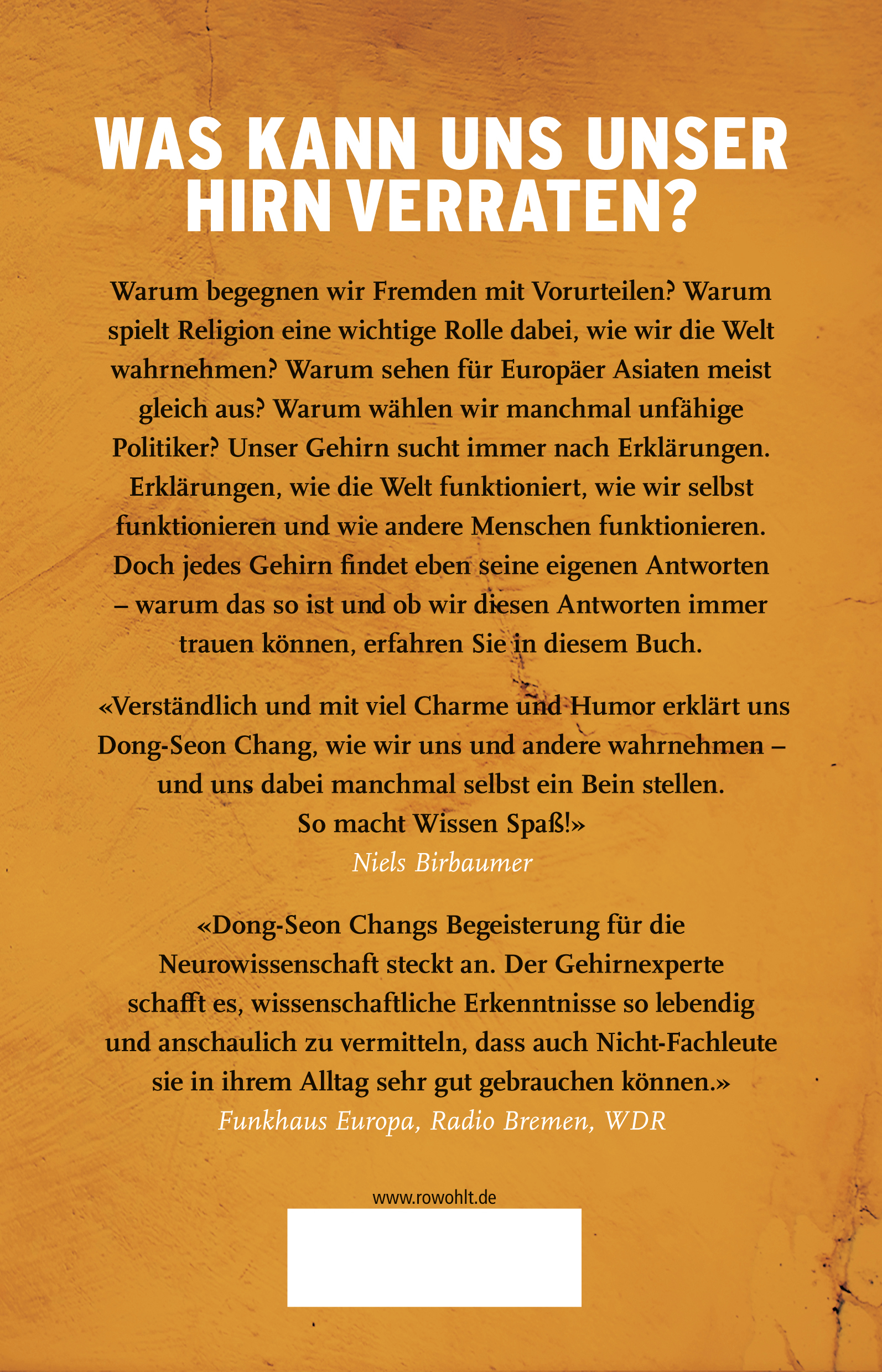 Warum begegnen wir Fremden mit Vorurteilen? Warum spielt Religion eine wichtige Rolle dabei, wie wir die Welt wahrnehmen? Warum sehen für Europäer Asiaten meist gleich aus? Warum wählen wir manchmal unfähige Politiker? Unser Gehirn sucht immer nach Erklärungen. Erklärungen, wie die Welt funktioniert, wie wir selbst funktionieren und wie andere Menschen funktionieren. Doch jedes Gehirn findet eben seine eigenen Antworten - warum das so ist und ob wir diesen Antworten immer trauen können, erfahren Sie in diesem Buch.