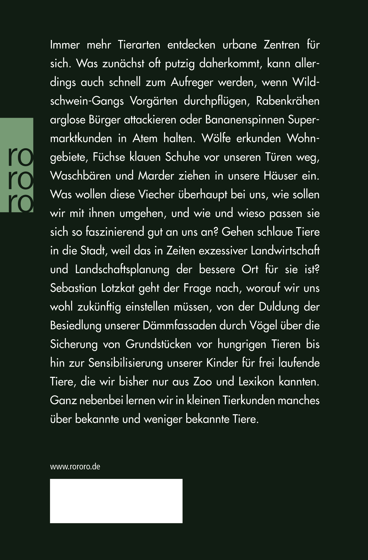 In angenehmen Plauderton schwärmt Lotzkat von der neuen Artenvielfalt der deutschen Stadtfauna, berichtet anschaulich aus eigenen Erfahrungen und gibt Tipps für den Umgang mit etwaigen tierischen Störenfrieden.