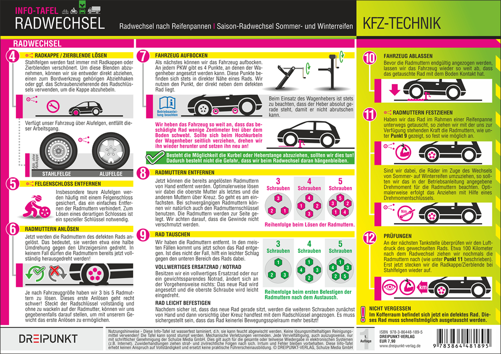 | Schlagworte | Auto • Auto; Ratgeber • Autos: Ratgeber, Sachbuch • DIY • Dreipunkt • Dreipunkt-Verlag • Felge • Info-Tafel • InfoTafel • Panne • Rad • Radwechsel • Rad wechseln • Reifen • Reparatur • reparieren • Reperatur • Wartung |