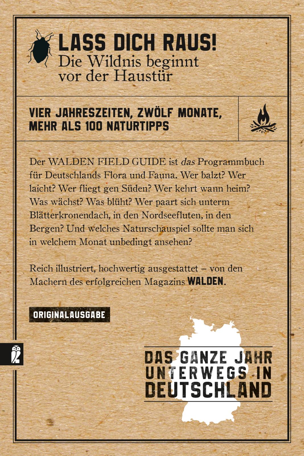 Vier Jahreszeiten, zwölf Monate, mehr als 100 Naturtipps: Der WALDEN FIELD GUIDE ist das Programmbuch für Deutschlands Flora und Fauna. Wer balzt? Wer laicht? Wer fliegt gen Süden? Wer kehrt heim? Was wächst? Was blüht? Wer paart sich unterm Blätterkronendach, in den Nordseefluten, in den Bergen? Und welches Naturschauspiel sollte man sich in welchem Monat unbedingt ansehen? Reich illustriert, hochwertig ausgestattet — von den Machern des erfolgreichen Magazins WALDEN.