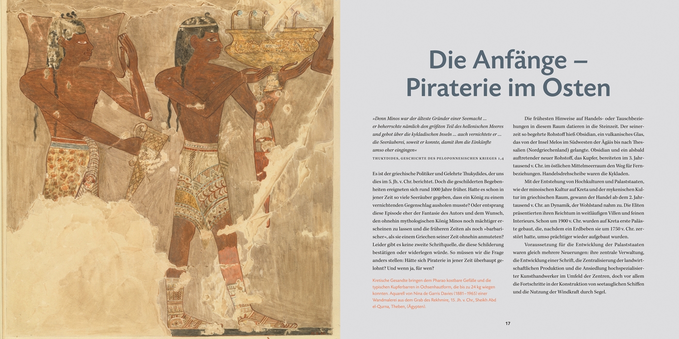 Ab dem ersten Jahrtausend vor Christus entstehen rund ums Mittelmeer mächtige Zivilisationen und prachtvolle Städte. Quelle ihres Wohlstands ist das Meer. Dank seetüchtiger Schiffe hatte es seinen Schrecken verloren und entwickelte sich nun zu einem florierenden Wirtschaftsraum. Verschifft werden Rohstoffe, Lebensmittel und Luxusgüter. Der Handel blüht, die Konkurrenz wächst.Immer häufiger geraten wirtschaftliche und politische Interessen in Konflikt. Längst ist das Mittelmeer nicht nur ein lohnendes Terrain für Kapitäne und Kaufleute, sondern auch für Seeräuber und Piraten.Heidrun Derks, Leiterin des Museums und Park Kalkriese, nimmt die marine Kulturgeschichte des Mittelmeerraums in den Blick und skizziert die antike Piraterie im Wechselspiel von Wirtschaft und Politik.