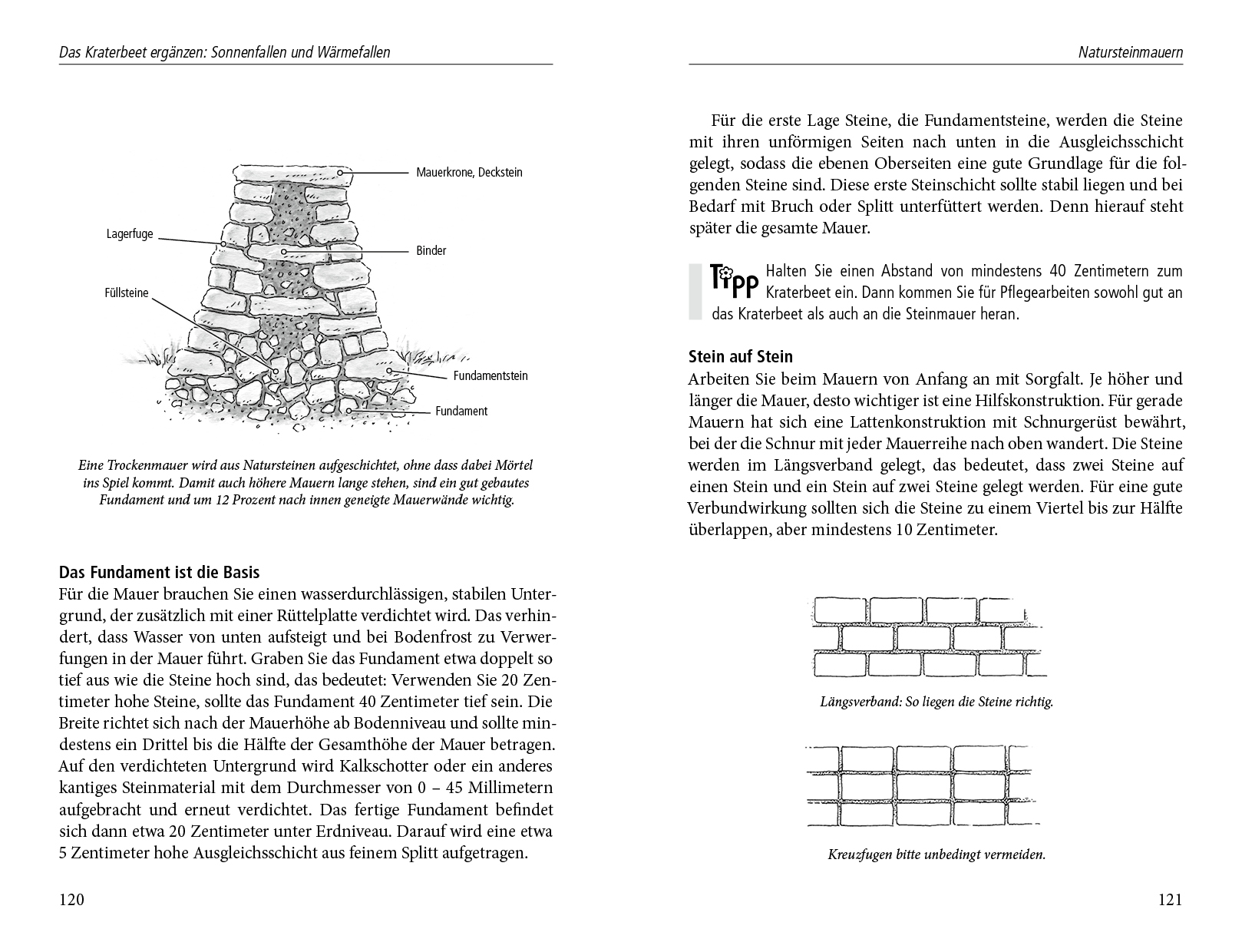 Als Erweiterungen des Kraterbeetes geht es im Buch auch um Senkgärten und Sonnenfallen mit schützender Trockenmauer. Empfindliche Stauden und Gehölze dürfen sich dort entfalten. Und mit abgeschirmtem Sitzplatz in der Senke entstehen besonders einladende Räume im Garten. Kraterbeete, Senkgärten und Sonnenfallen bereichern jeden Garten!
